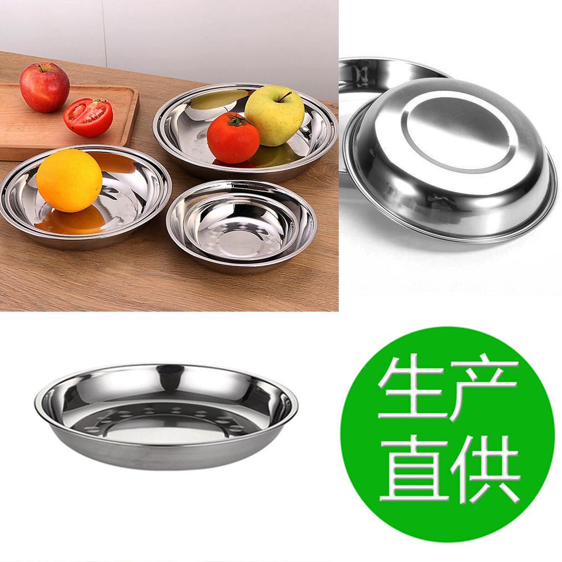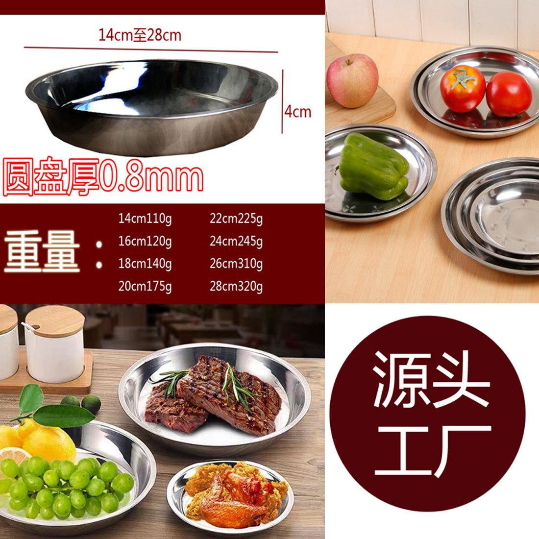 Plato de acero inoxidable para barbacoa, plato de disco, plato doméstico, plato redondo plano, plato de vajilla para cantina, plato de arroz, plato de banquete