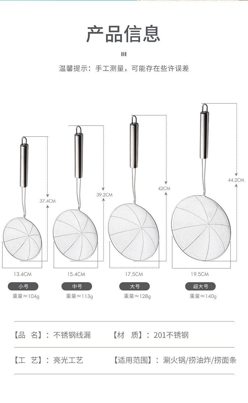 Filtro de malla de acero inoxidable para freír, colador de malla para ollas calientes, cuchara para albóndigas picantes, colador de drenaje de cocina