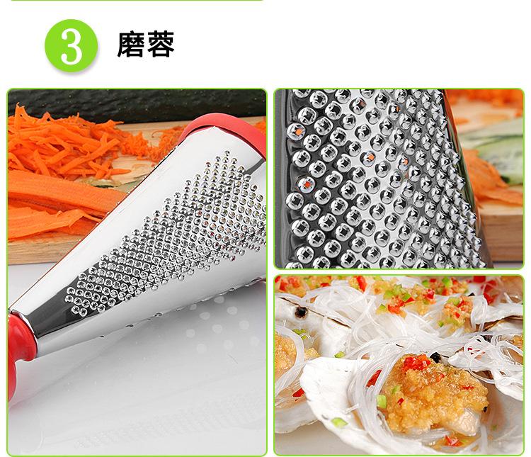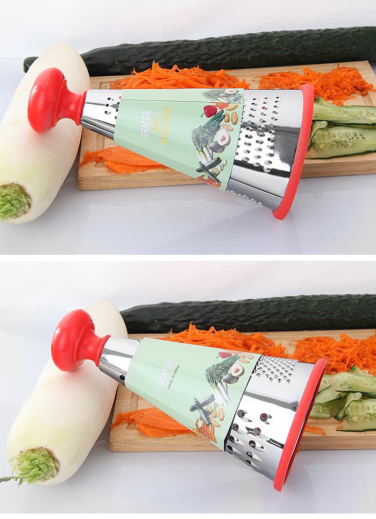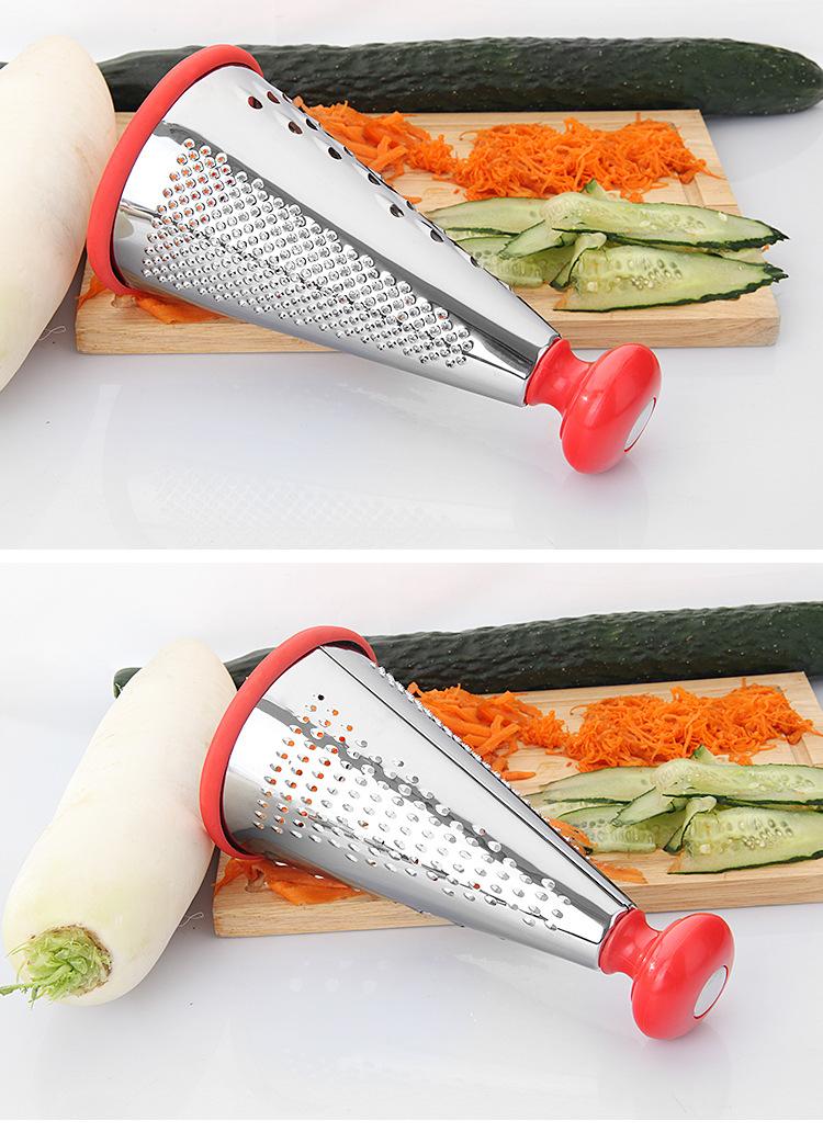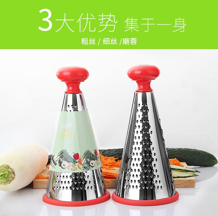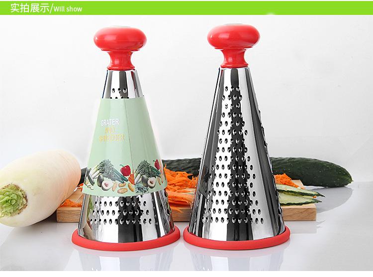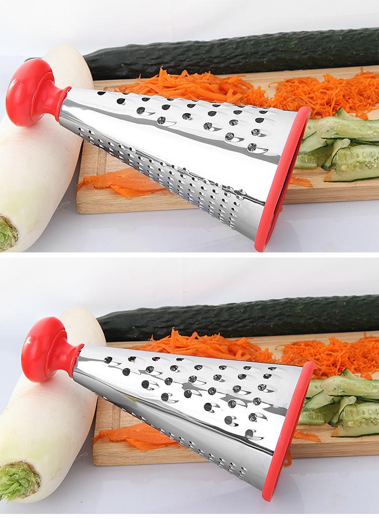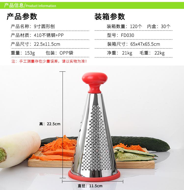 Cepilladora redonda de acero inoxidable de 9 pulgadas de tres lados para uso doméstico, cortador de verduras multifunción, rallador, herramienta de cocina