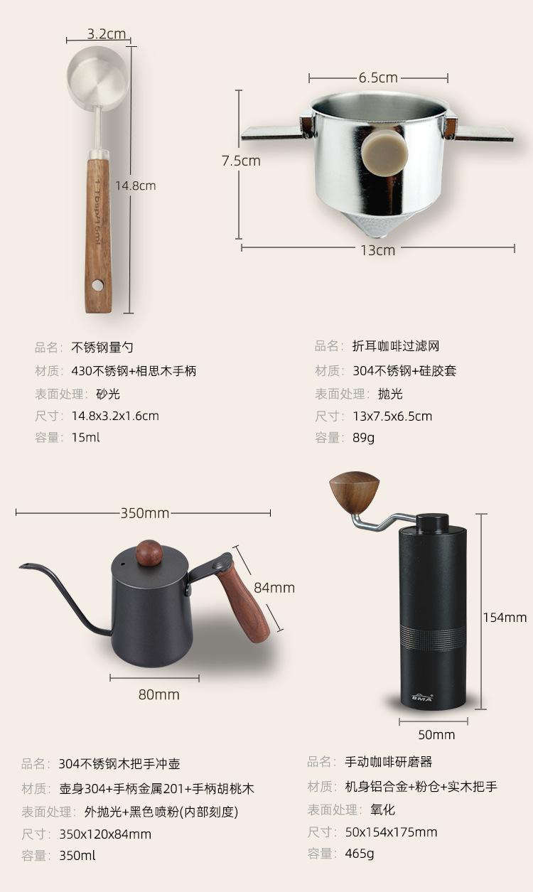 Steel core bean grinder-hand coffee gift box, Manual coffee grinder, Walnut handle pot (304 stainless steel)
