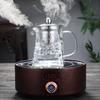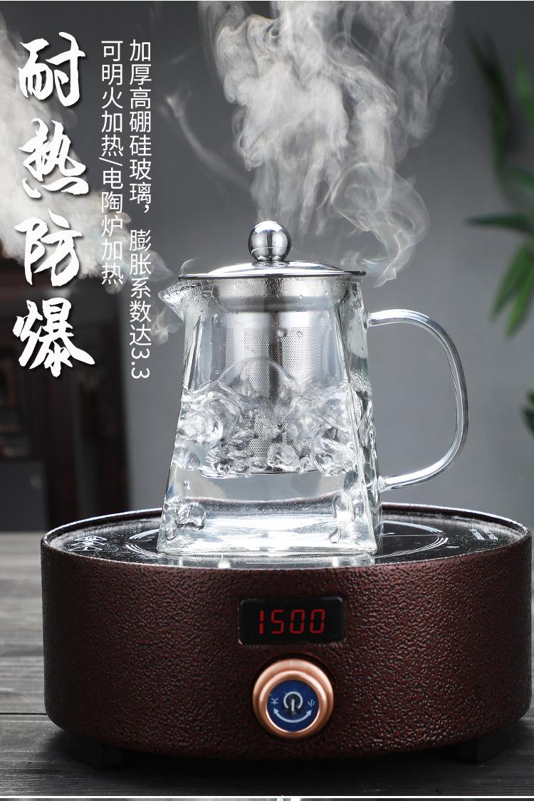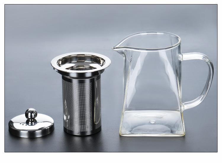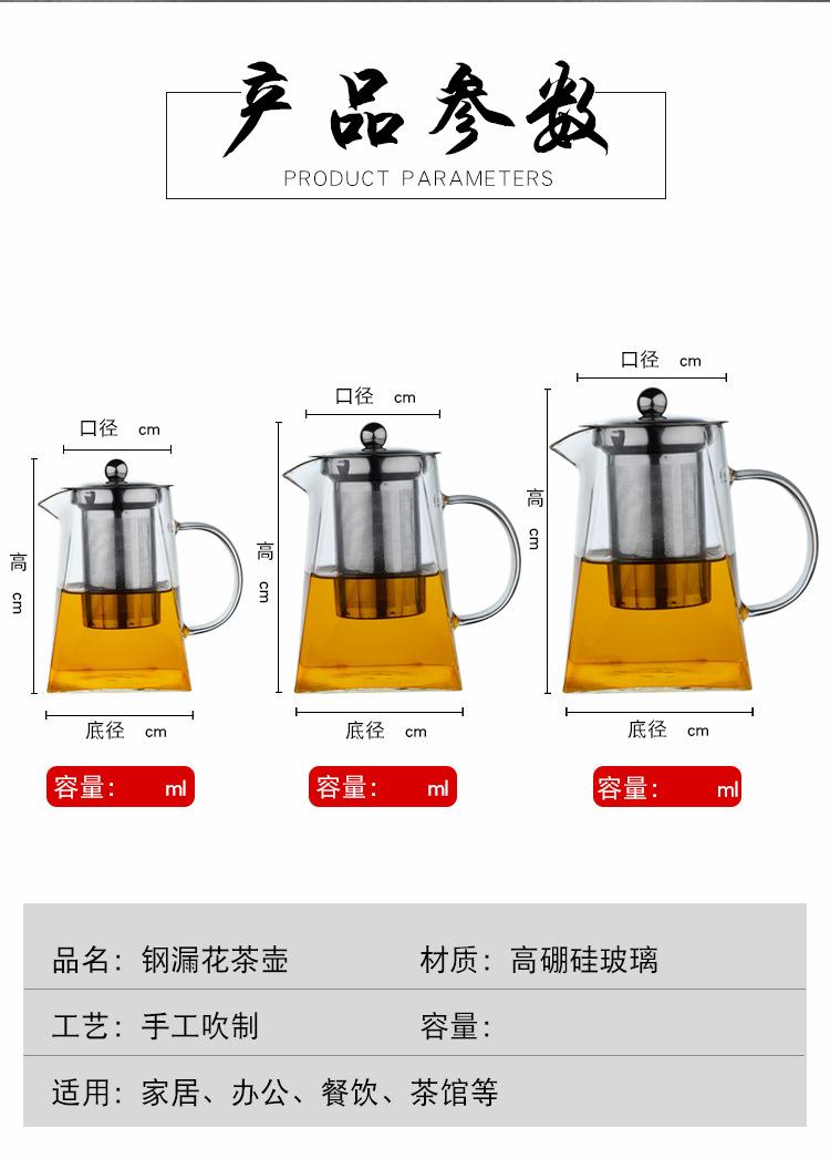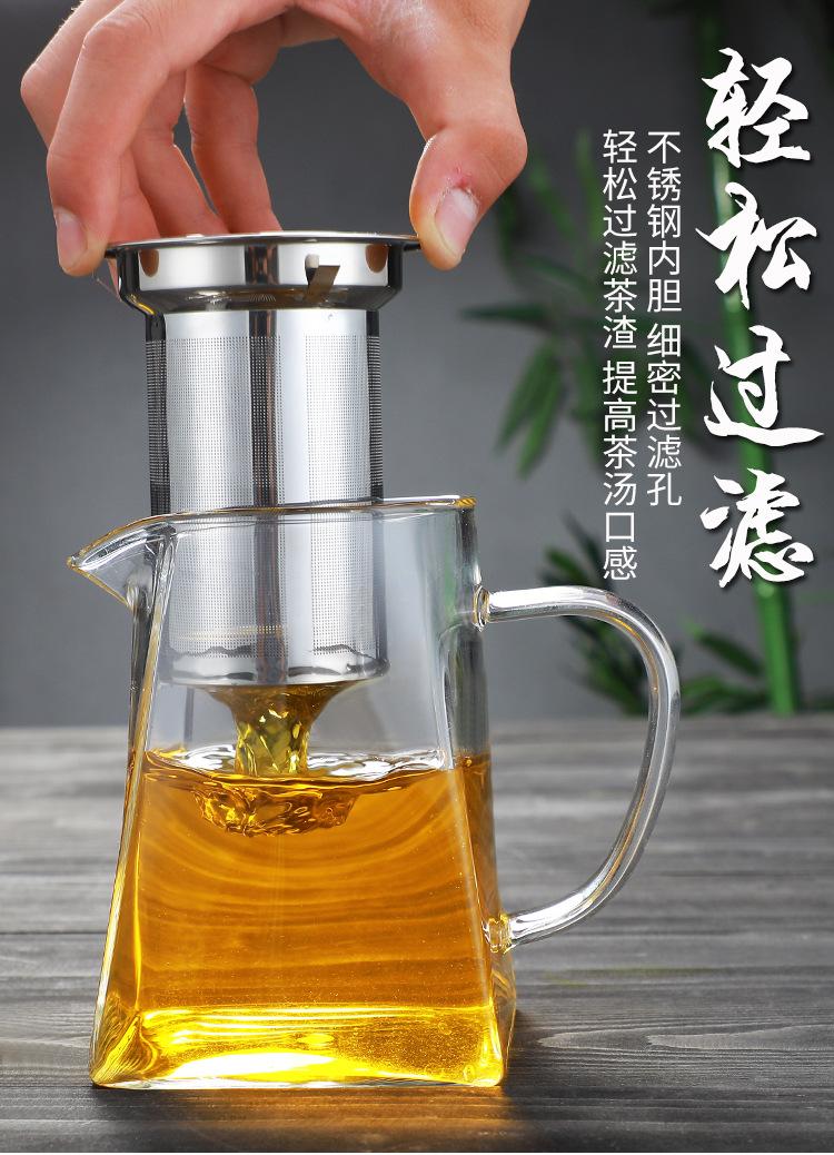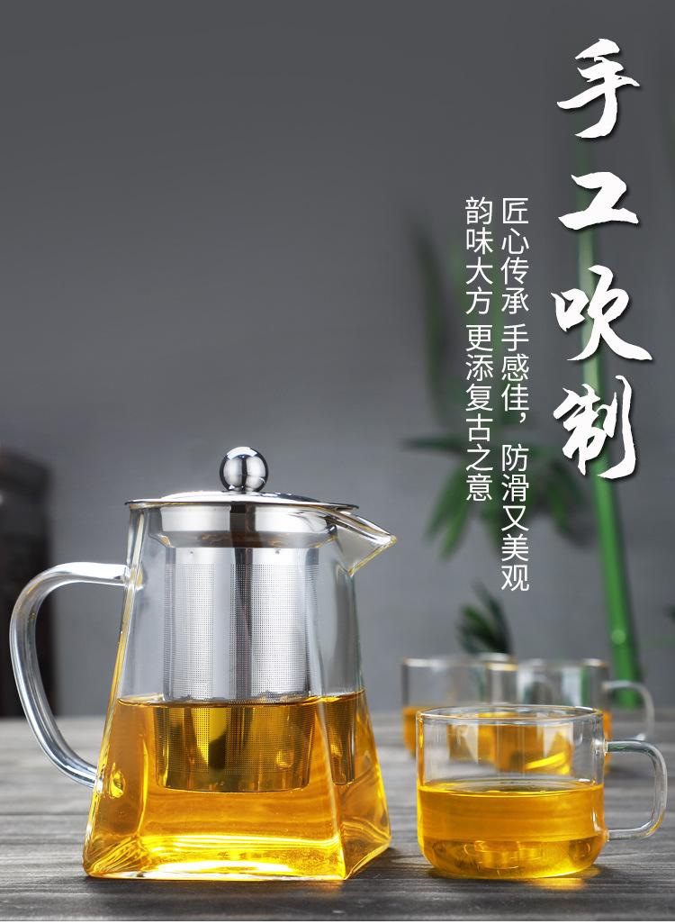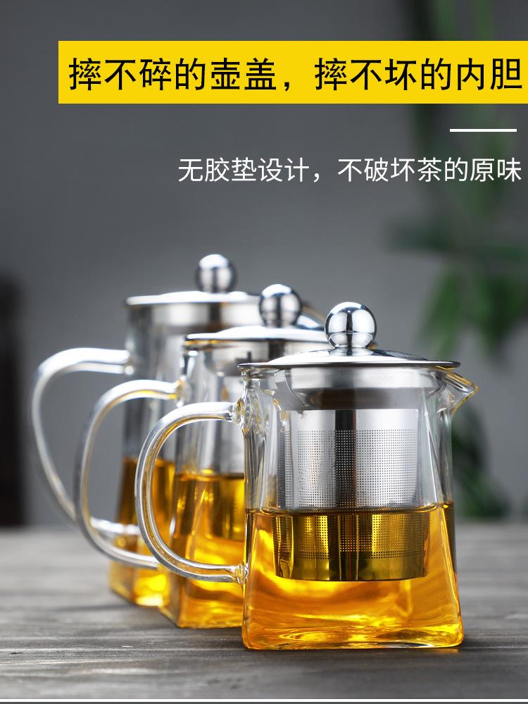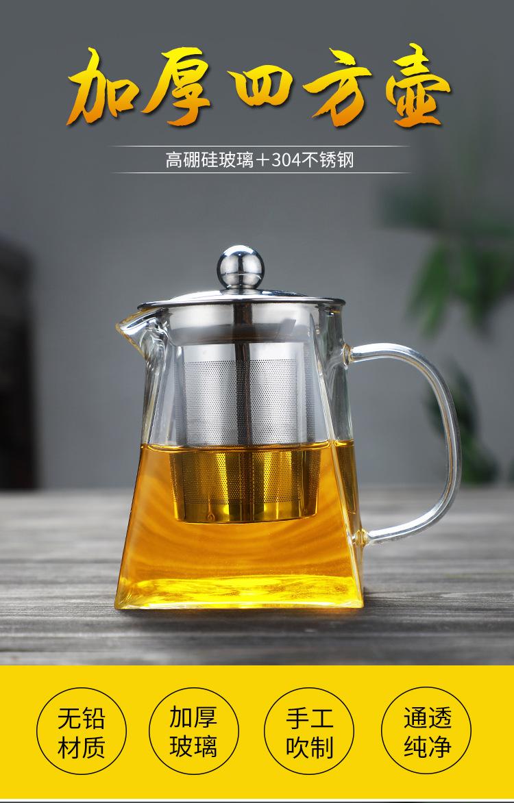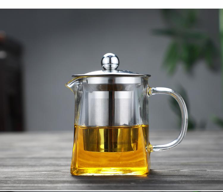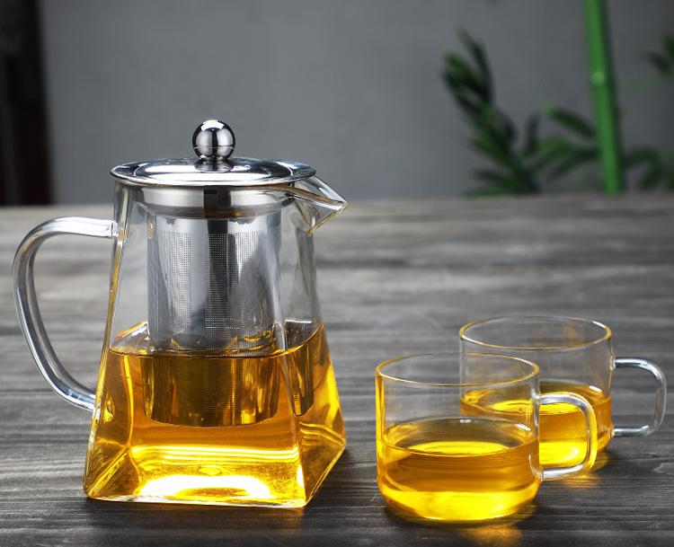 Tetera de vidrio transparente con fondo cuadrado para flores, tetera con filtro de acero inoxidable, juego de té doméstico de vidrio borosilicato con preocupación