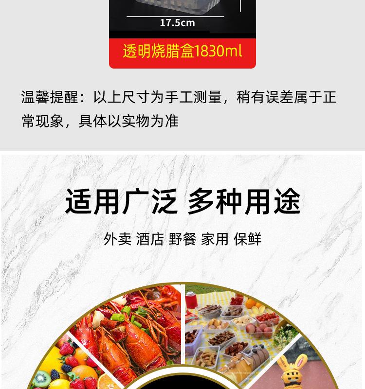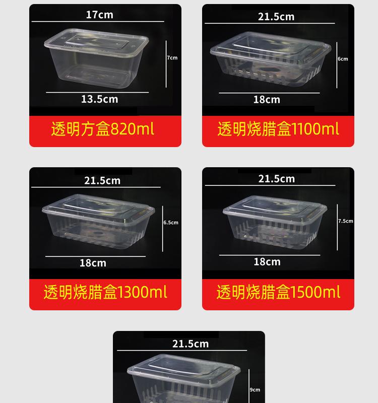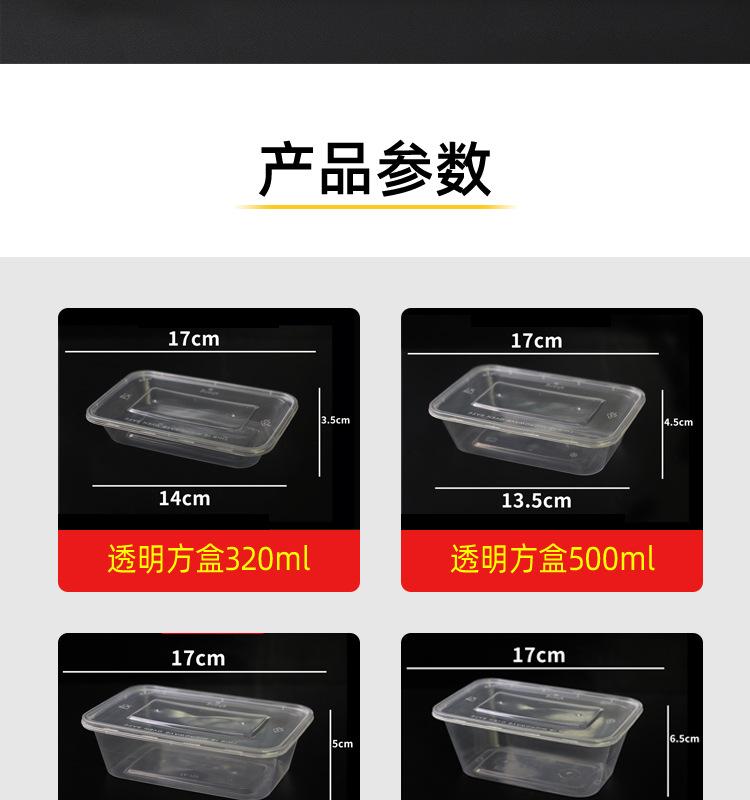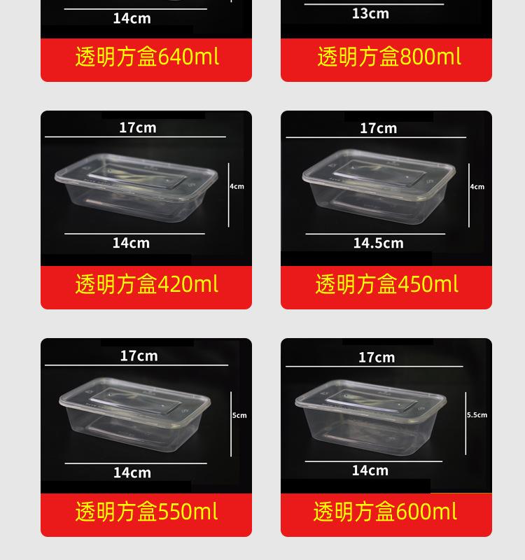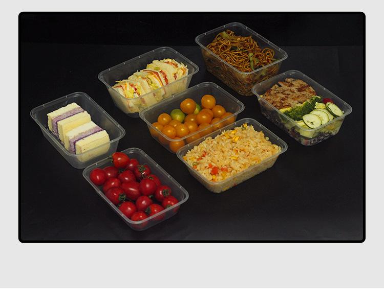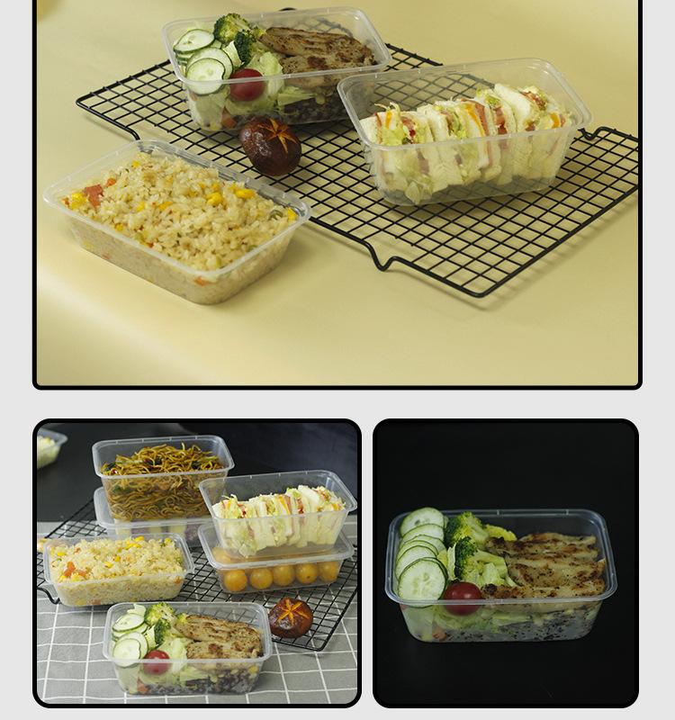 Lonchera desechable rectangular para llevar, lonchera negra transparente, lonchera de plástico cuadrada para comida rápida