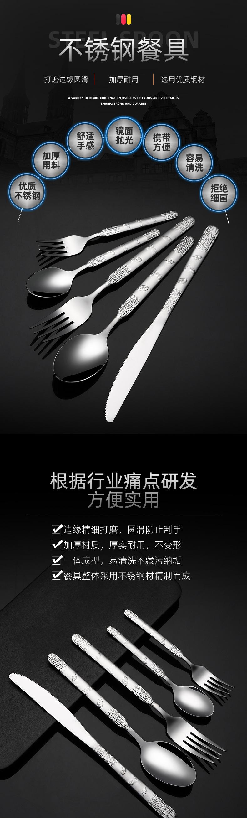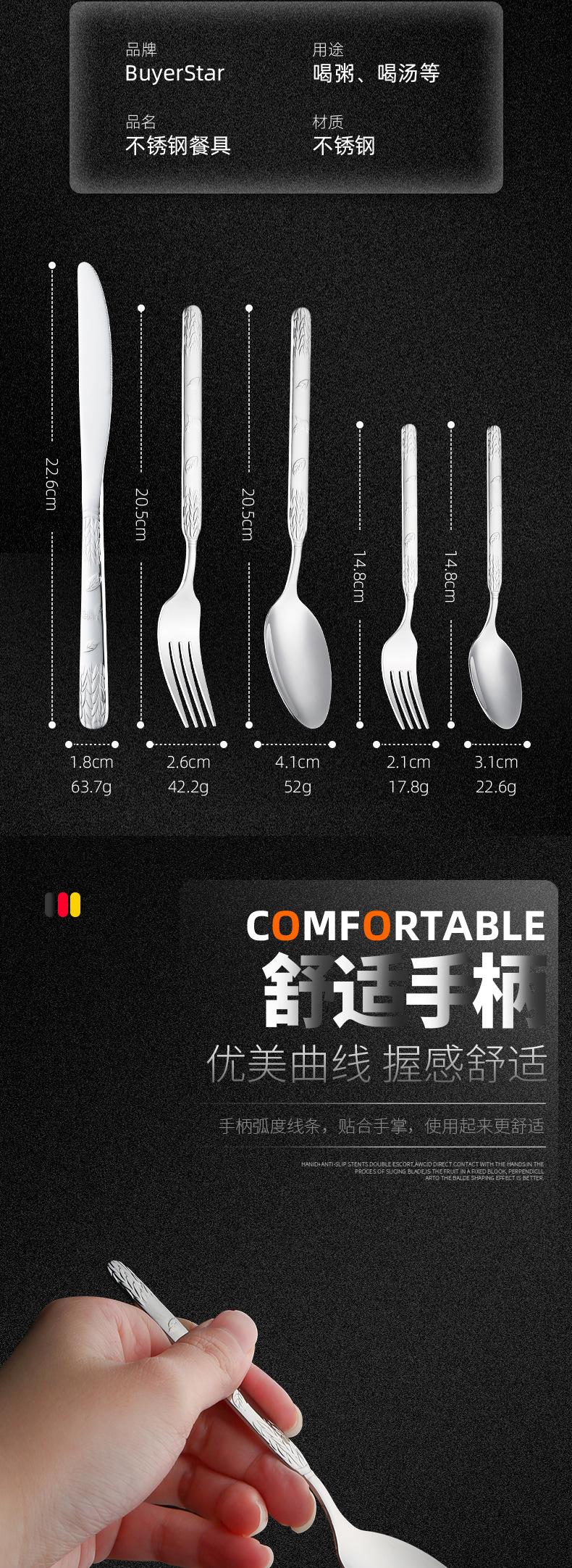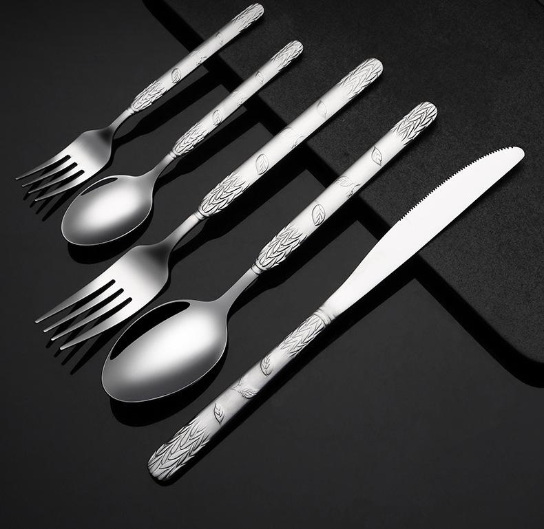 Cuchillo, tenedor y cuchara de acero inoxidable con mango redondo retro de espiga de trigo, apto para postres domésticos, tenedores de hotel, cuchillos y tenedores para carne occidentales.