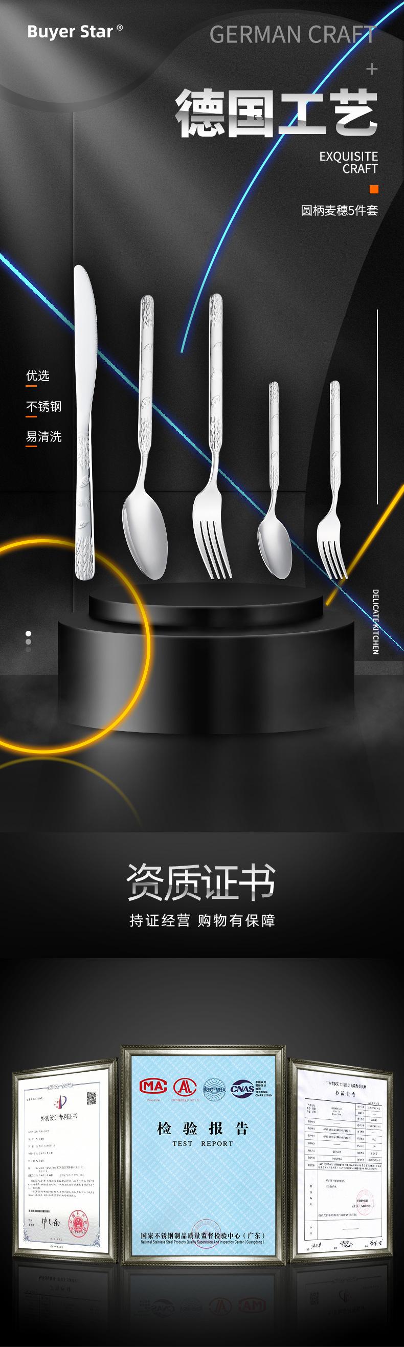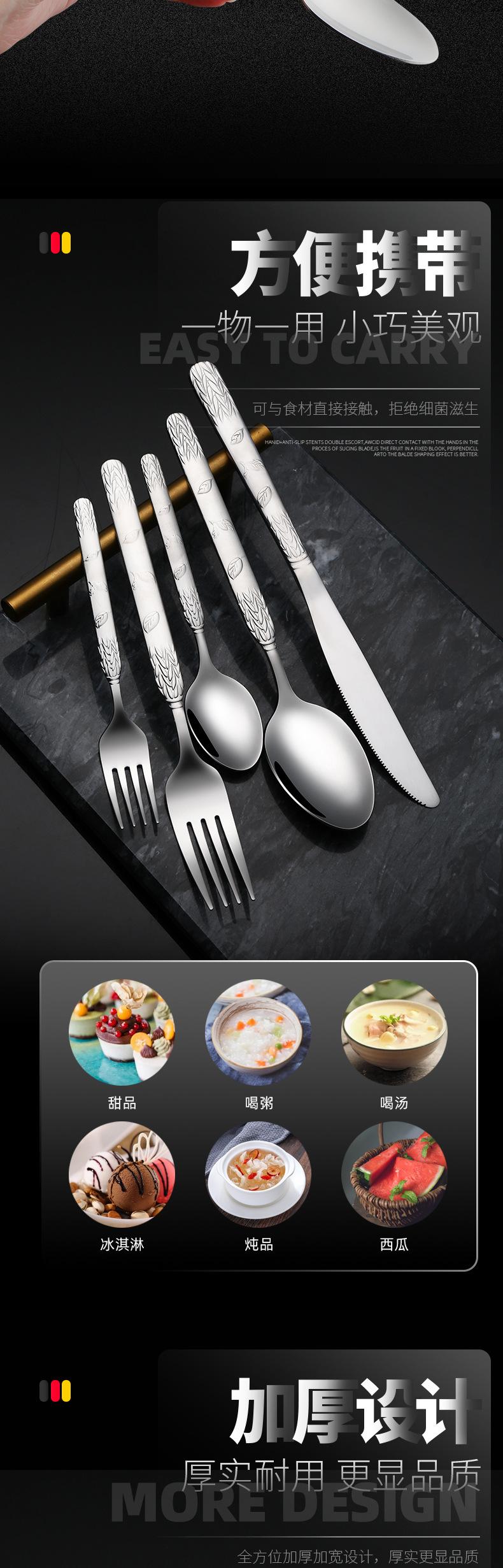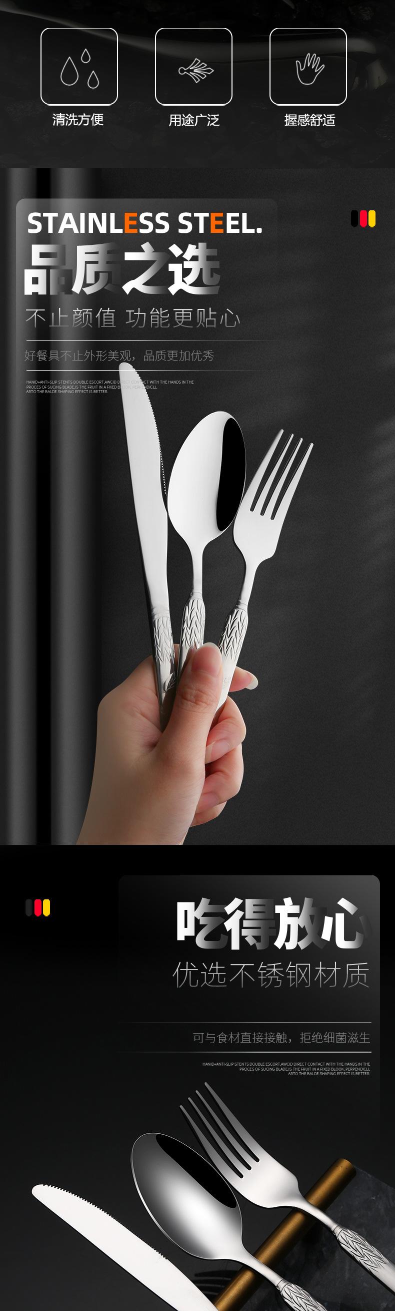 Cuchillo, tenedor y cuchara de acero inoxidable con mango redondo retro de espiga de trigo, apto para postres domésticos, tenedores de hotel, cuchillos y tenedores para carne occidentales.