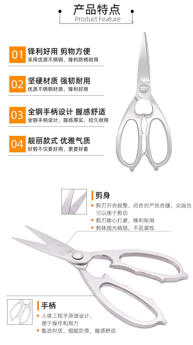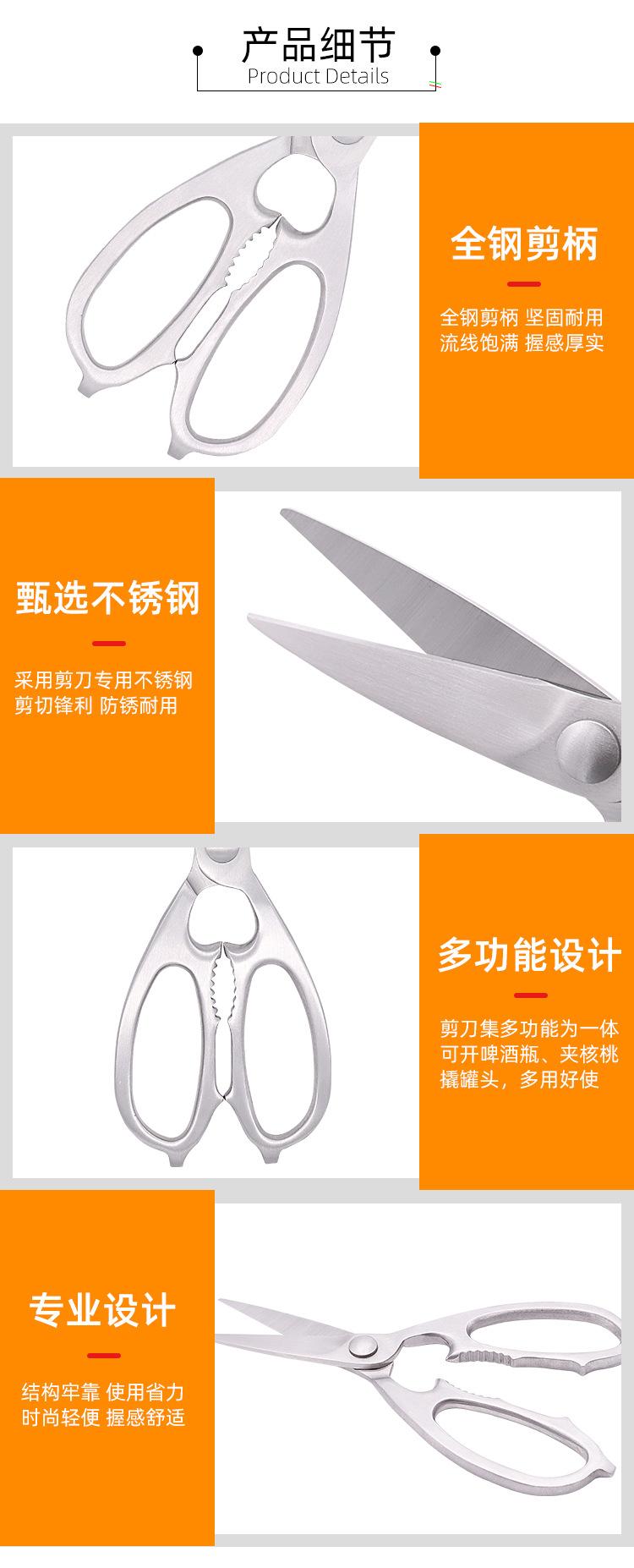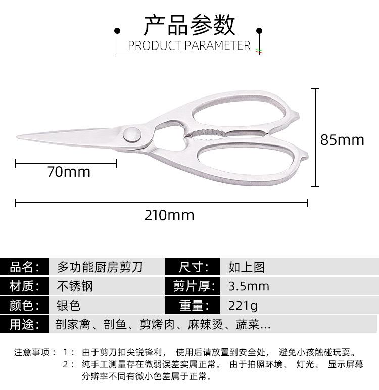 Tijeras de Acero Inoxidable de Una Pieza Todo Acero Tijeras de Cocina Multifuncionales Domésticas para Matar Pescado Huesos de Pollo Herramienta Venta al Mayoreo de Fábrica