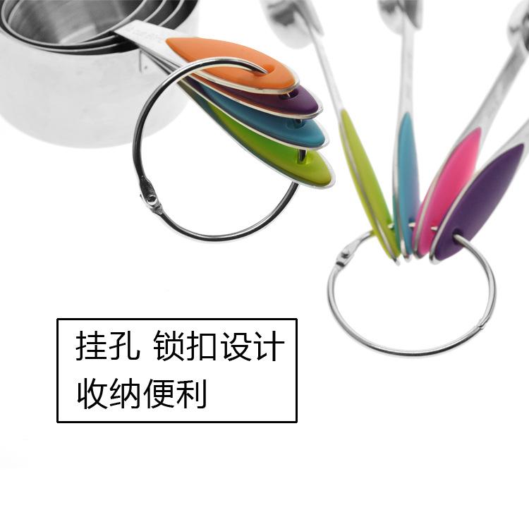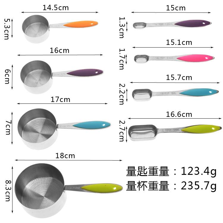 Material del producto: Taza medidora: acero inoxidable 430# + almohadilla antideslizante para la mano Cuchara medidora: acero inoxidable 430#
