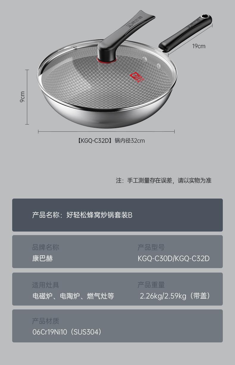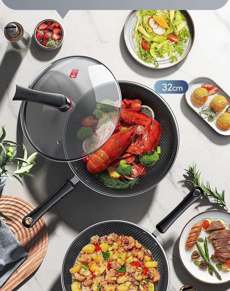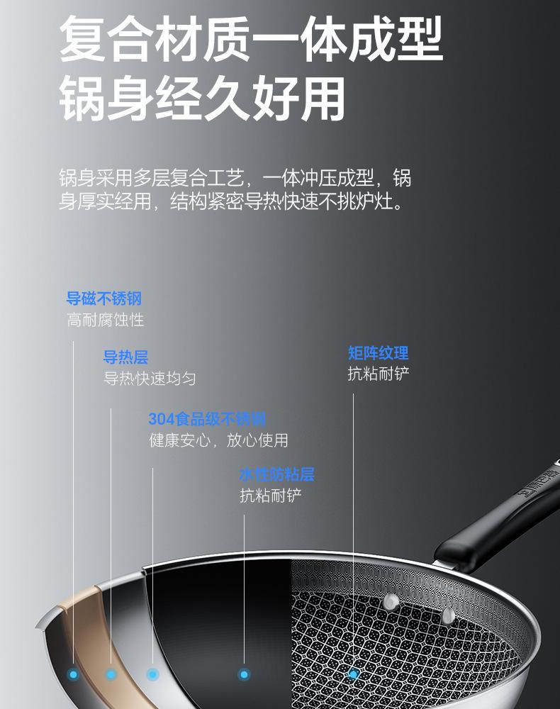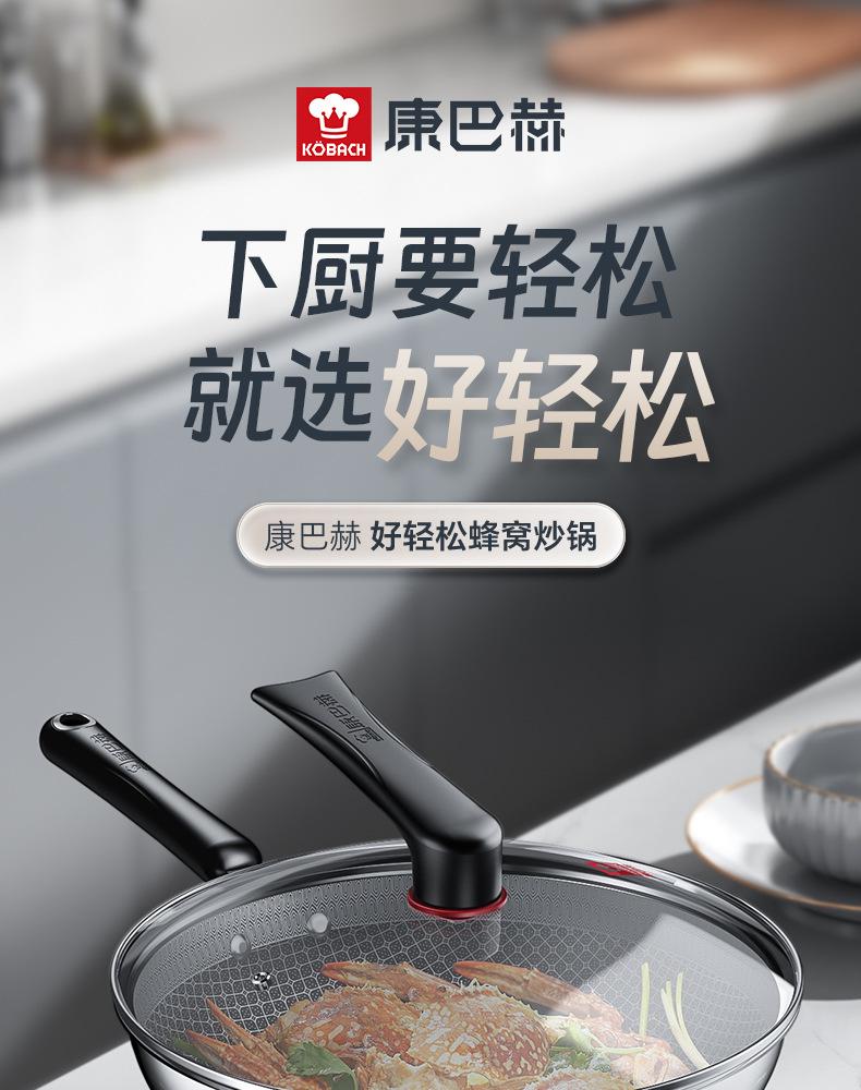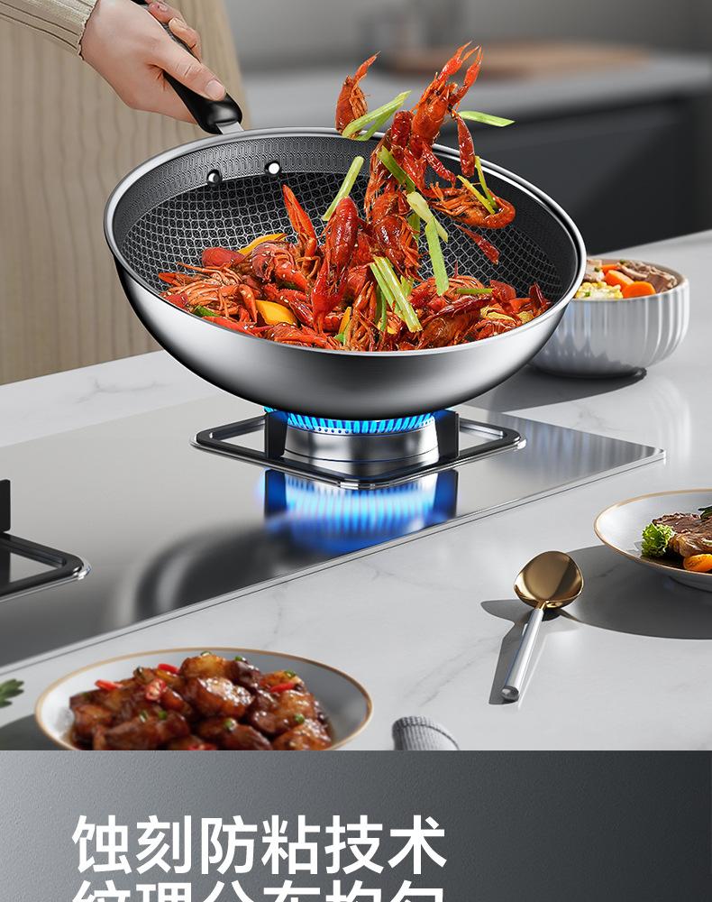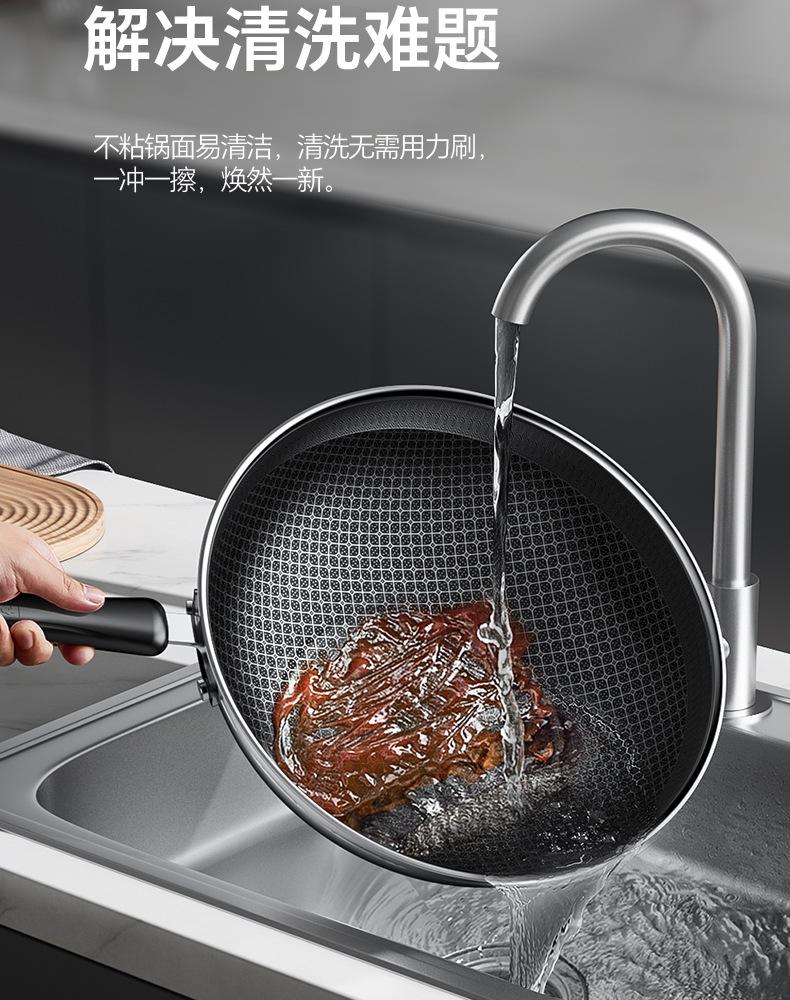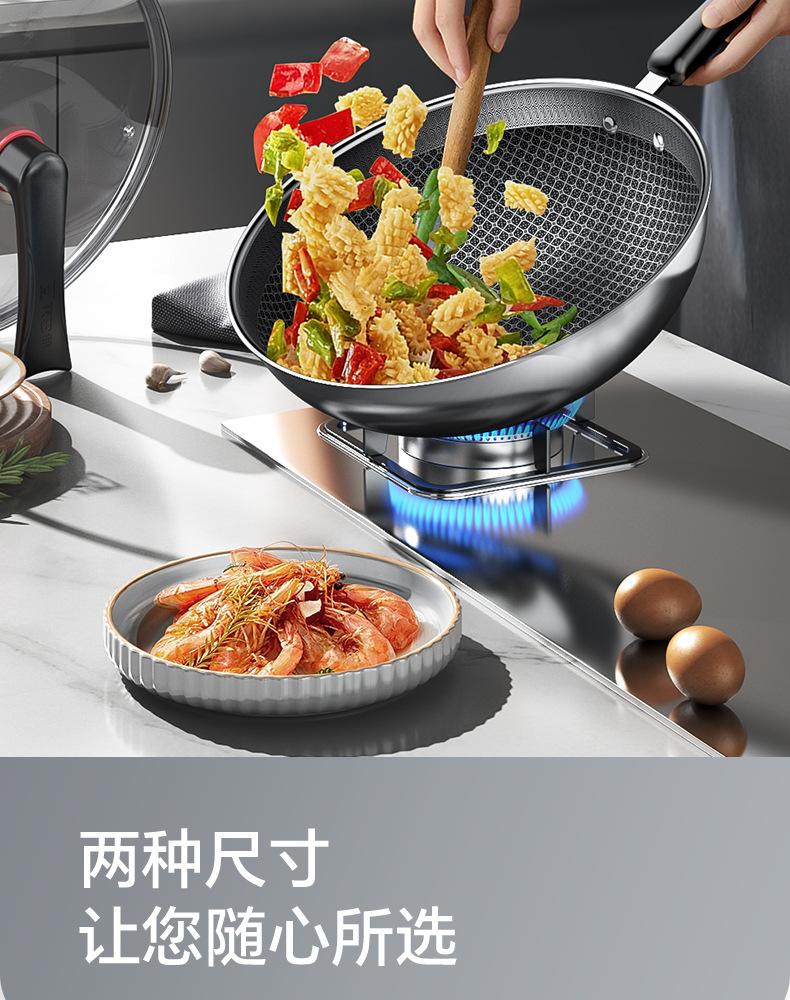 Sartén antiadherente Kangbach para el hogar, wok de acero inoxidable 304 con diseño de panal, antiadherente, para cocina de inducción y cocina de gas universal.