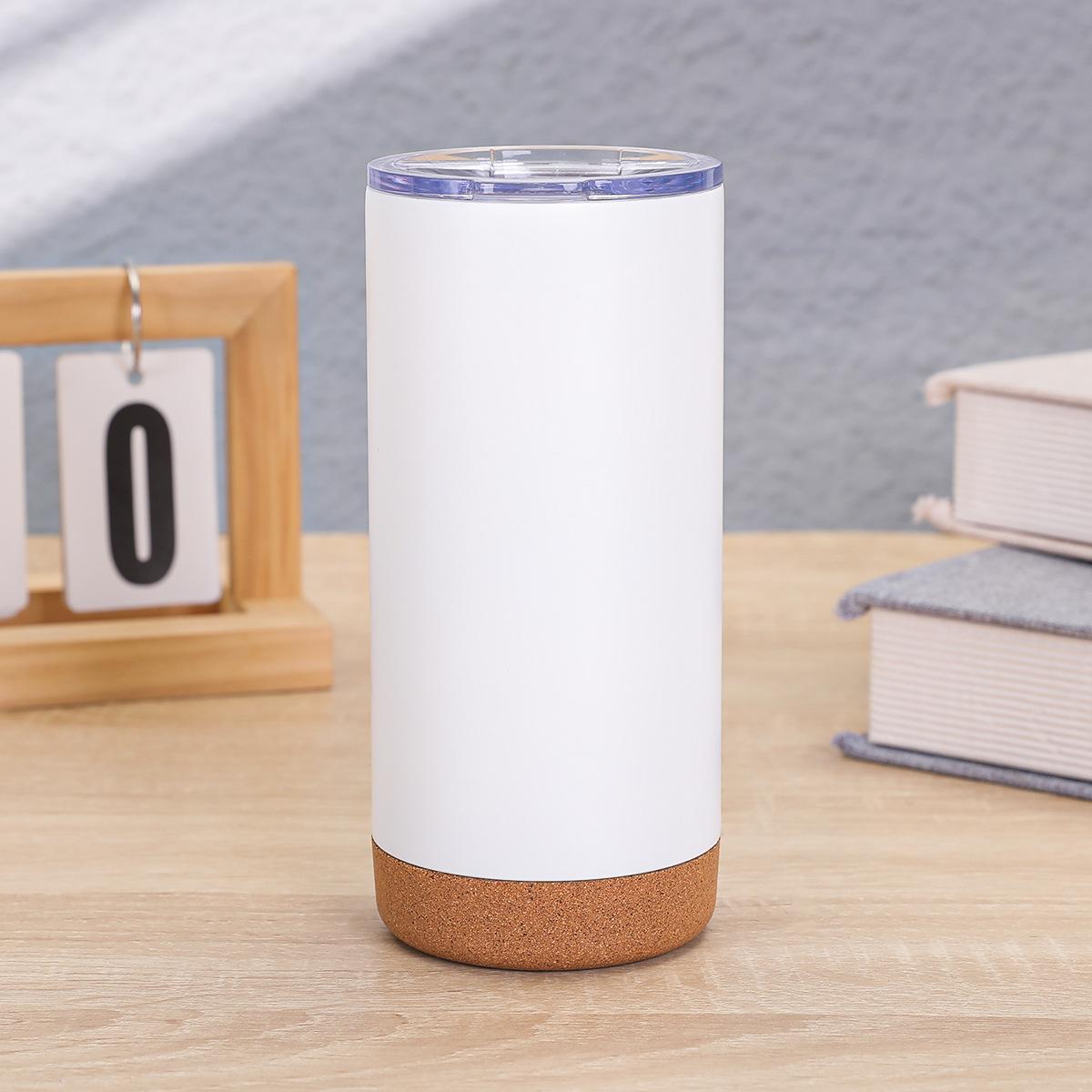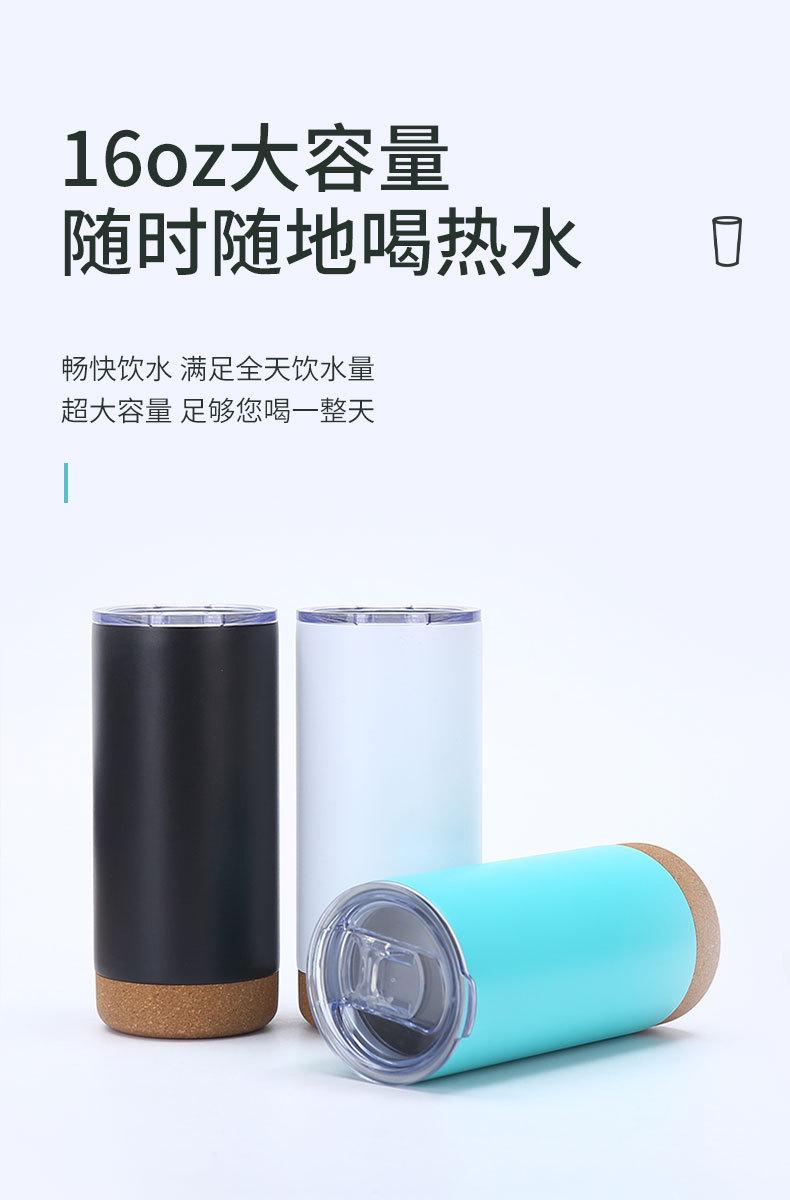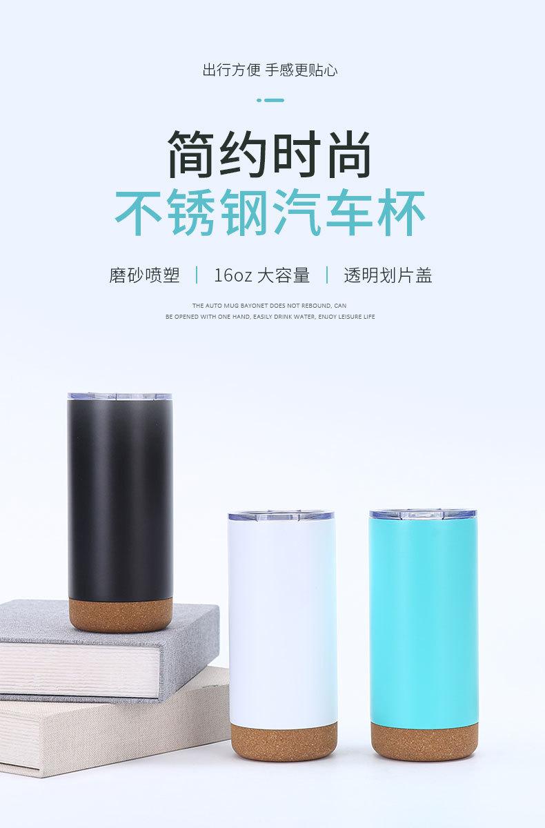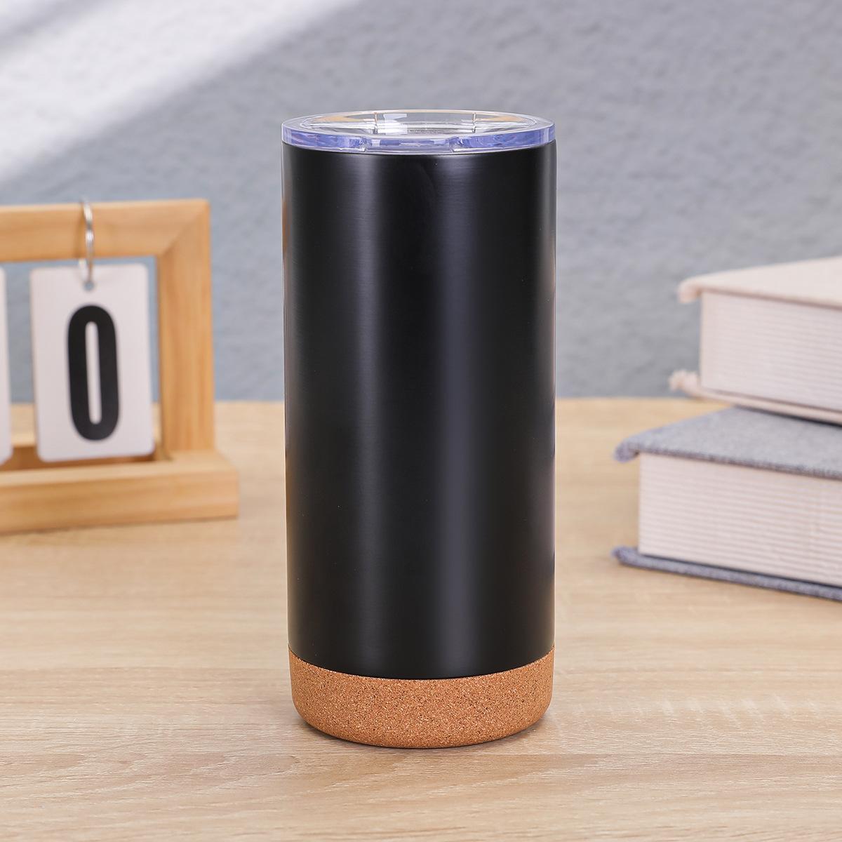 Nuevo Vaso recto para coche de 16 oz con fondo de corcho, taza de vacío de acero inoxidable 304, taza de vacío de doble capa, taza de café