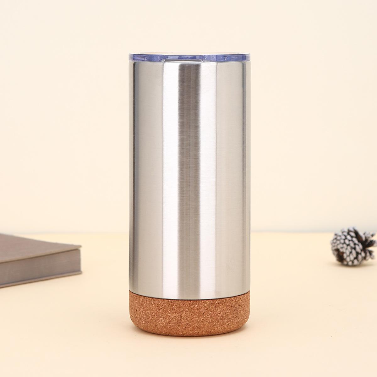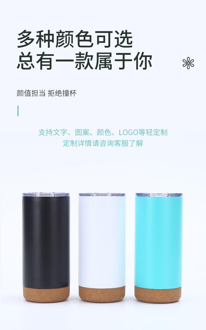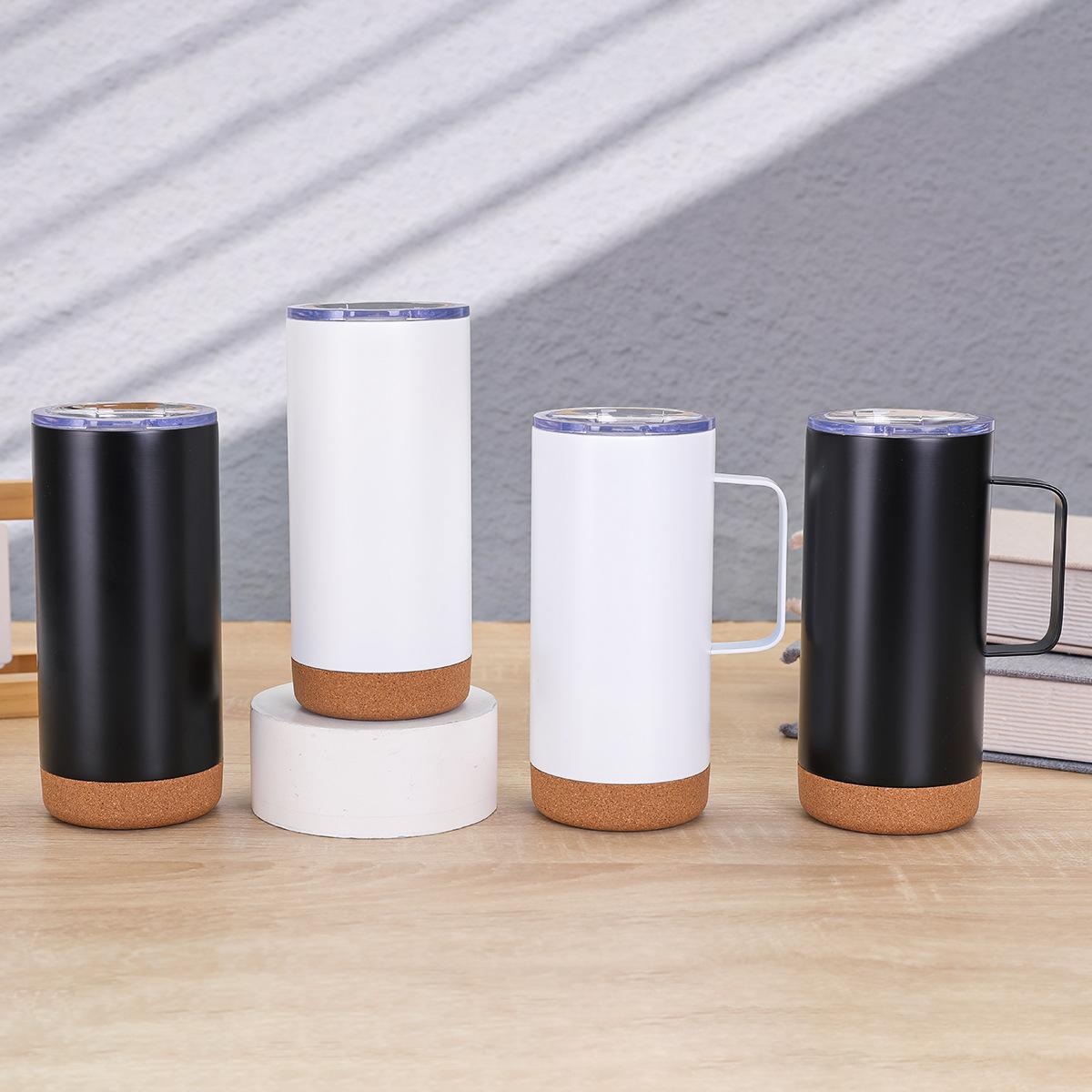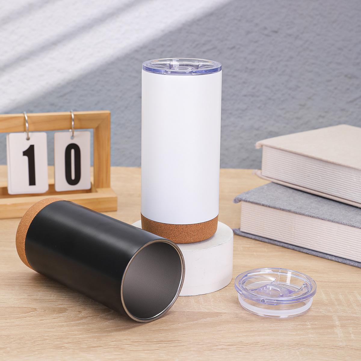 Nuevo Vaso recto para coche de 16 oz con fondo de corcho, taza de vacío de acero inoxidable 304, taza de vacío de doble capa, taza de café
