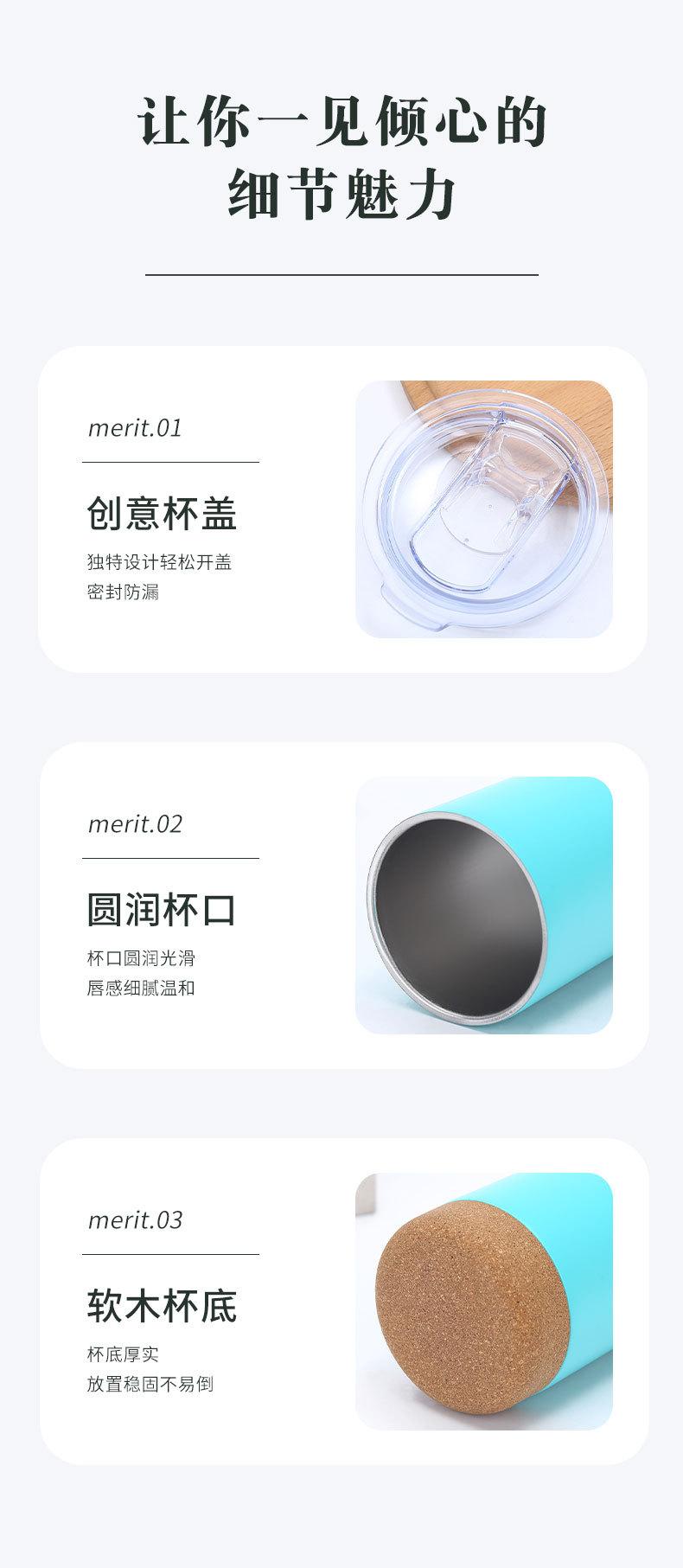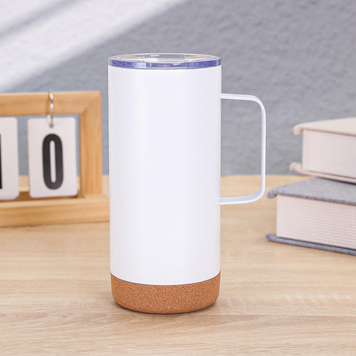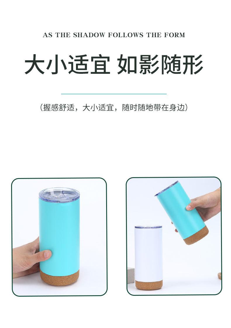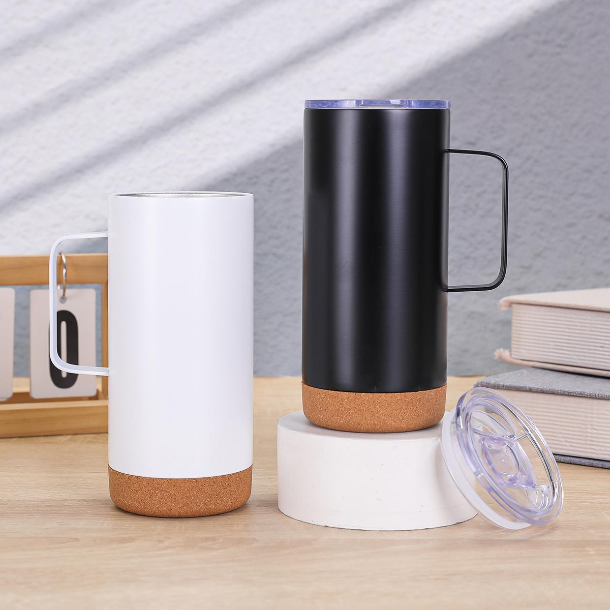 Nuevo Vaso recto para coche de 16 oz con fondo de corcho, taza de vacío de acero inoxidable 304, taza de vacío de doble capa, taza de café