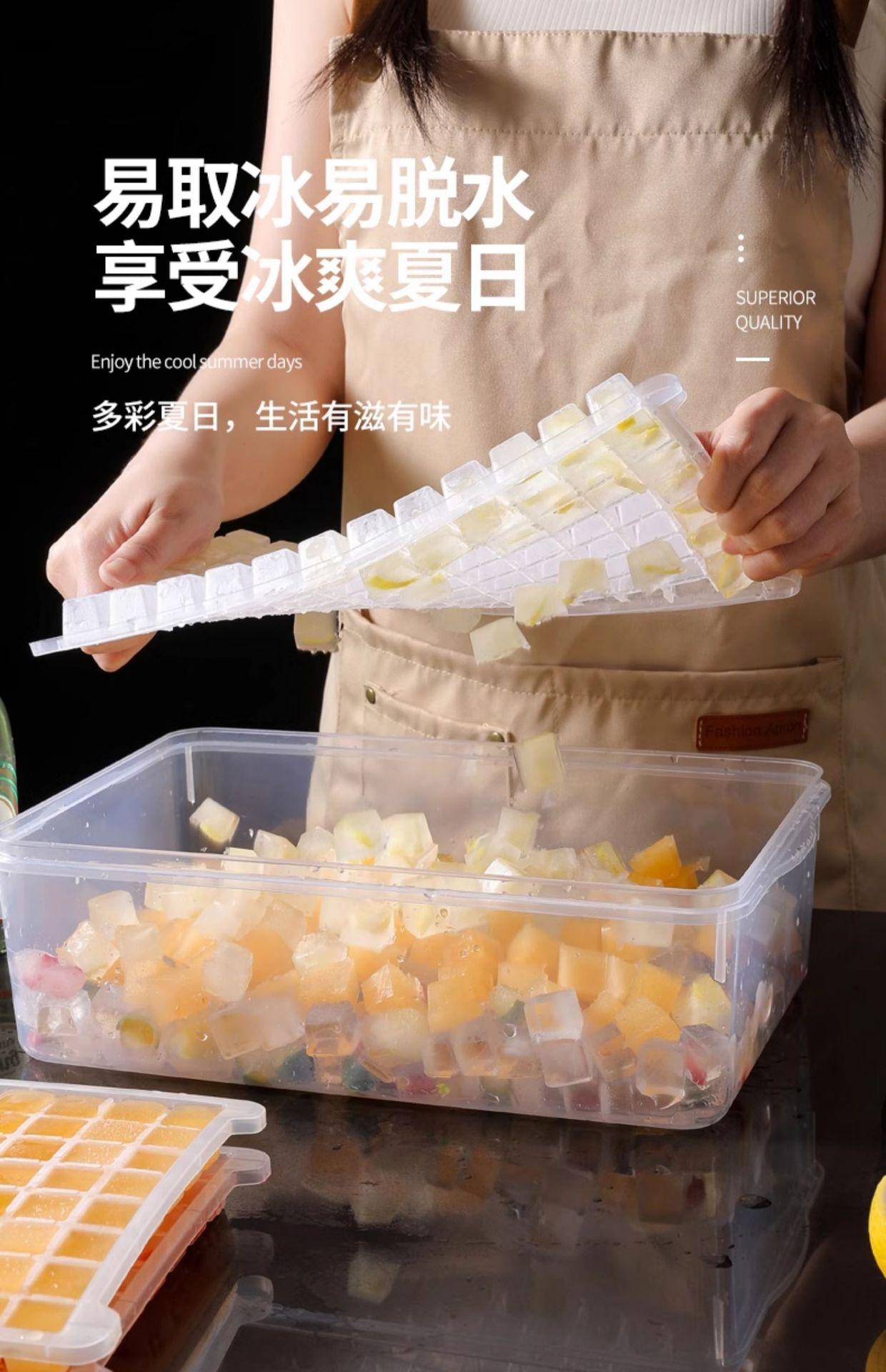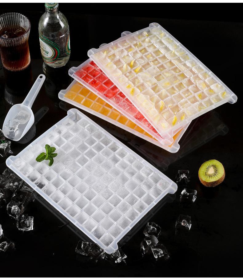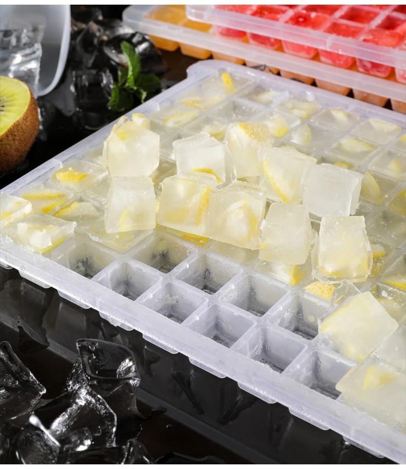 Bandeja de Hielo Película para Cubitos de Hielo Hielera Plástico de Grado Alimenticio para Hogar Prensa Molde para Hacer Hielo Gran Capacidad Caja de Almacenamiento de Hielo con Tapa