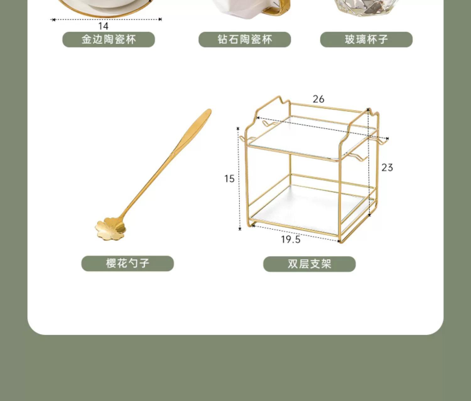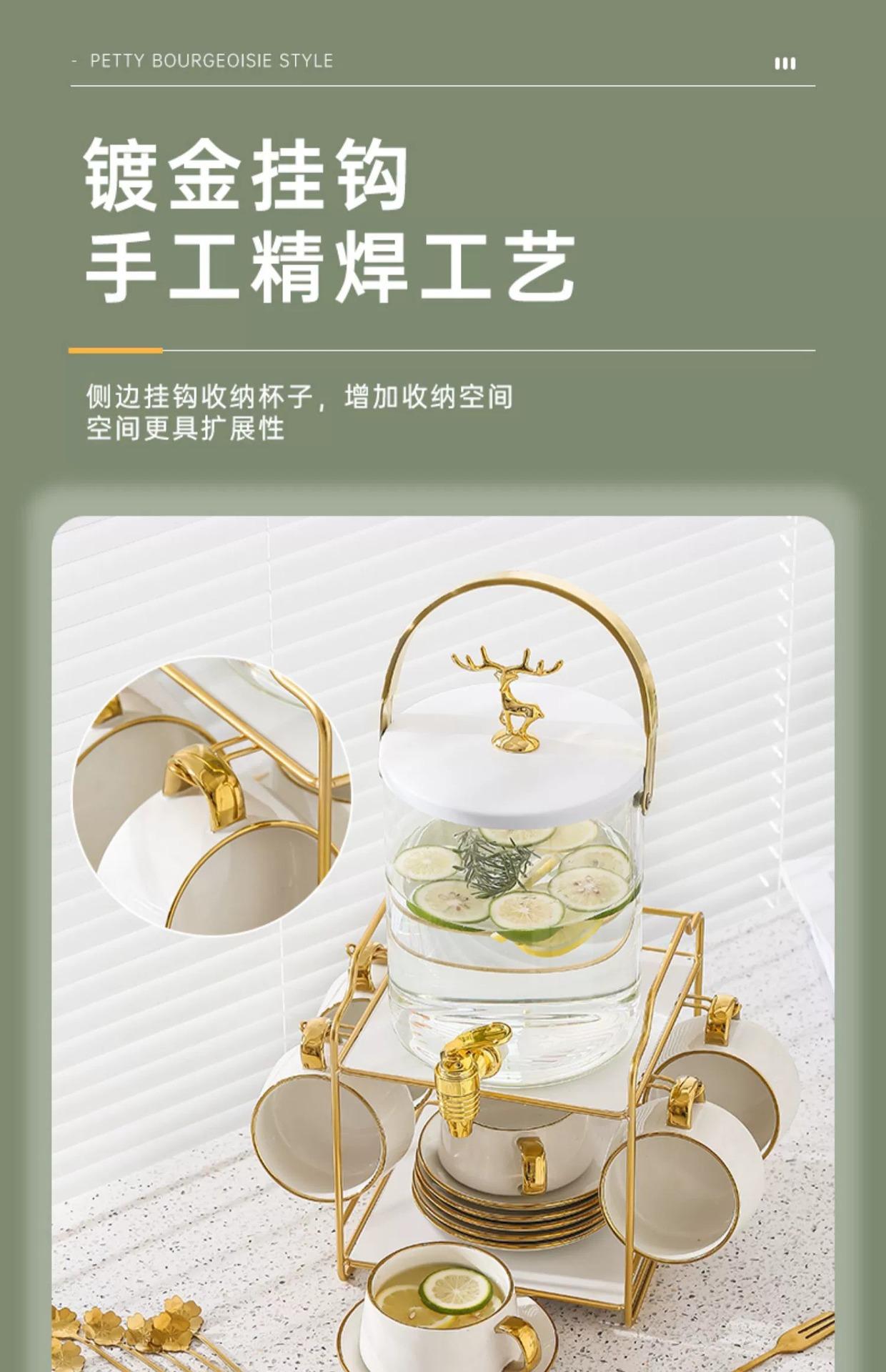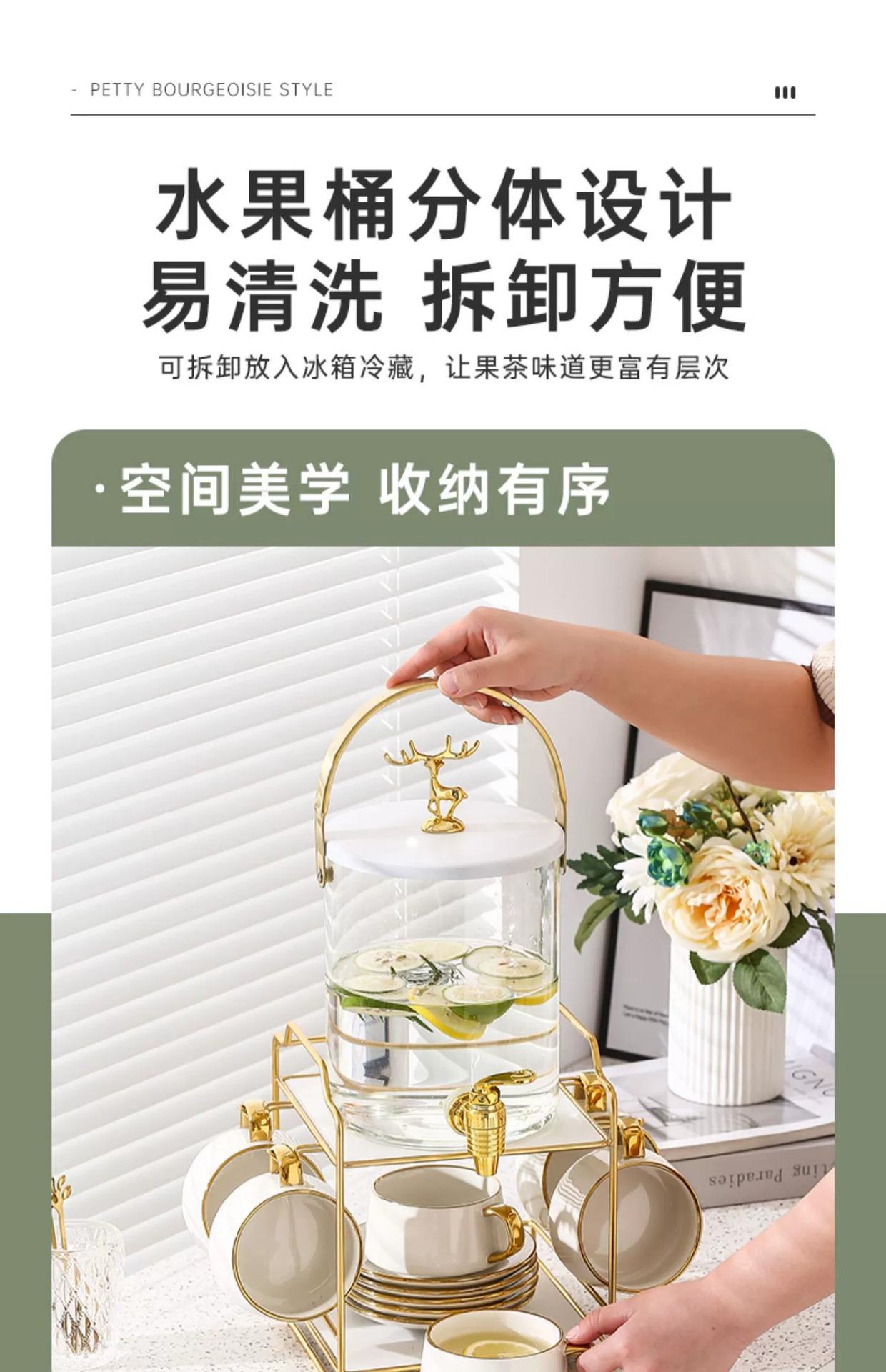 Fruit and beverage bucket with handle (PVC faucet) +6 cups and saucers