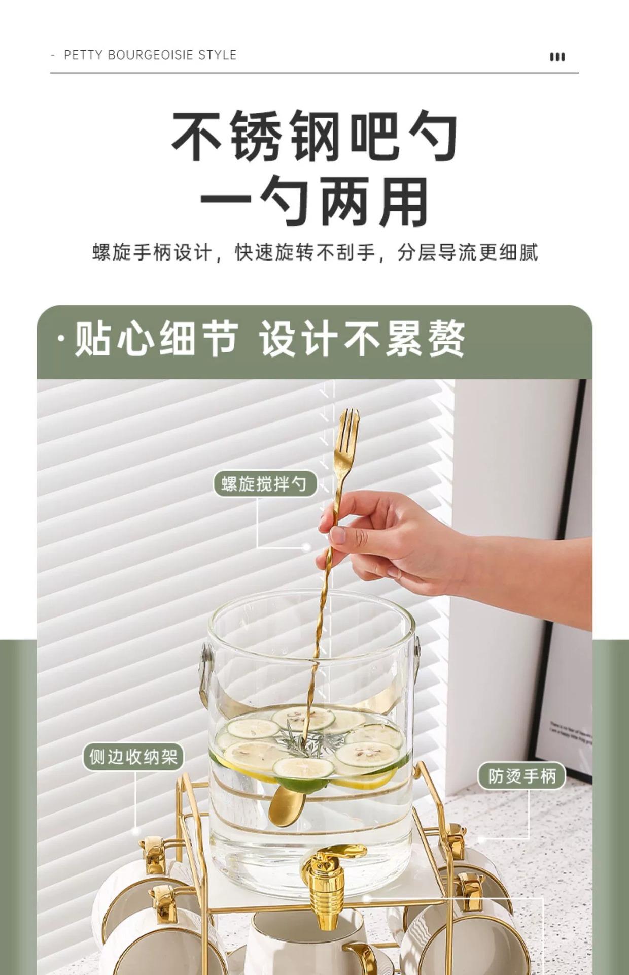 Fruit beverage bucket with handle (PVC faucet) +6 mug