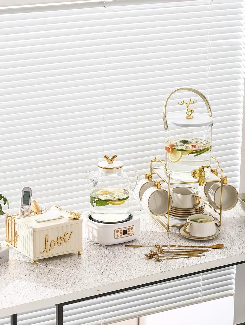 Fruit and beverage bucket with handle (PVC faucet) +4 cups and saucers
