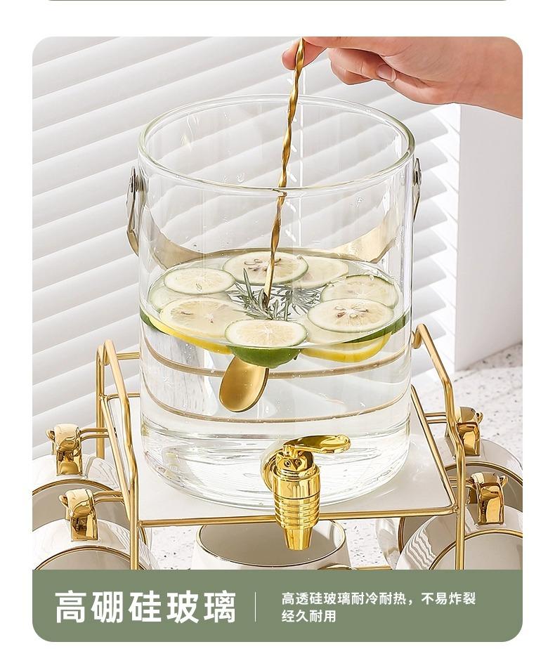 Hervidor de agua fría con grifo, gran capacidad, barril para bebidas, de vidrio para el hogar con asa, venta al por mayor