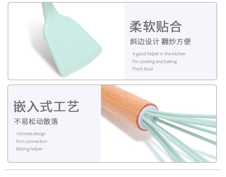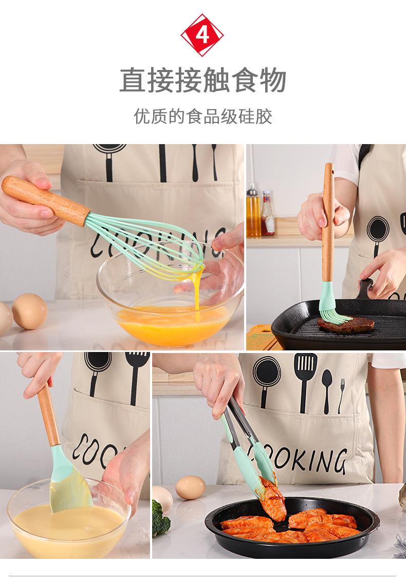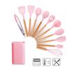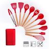 Juego de 11 utensilios de cocina de silicona con mango de madera y barril cuadrado para almacenar, juego de utensilios de cocina de silicona, pala y cuchara.