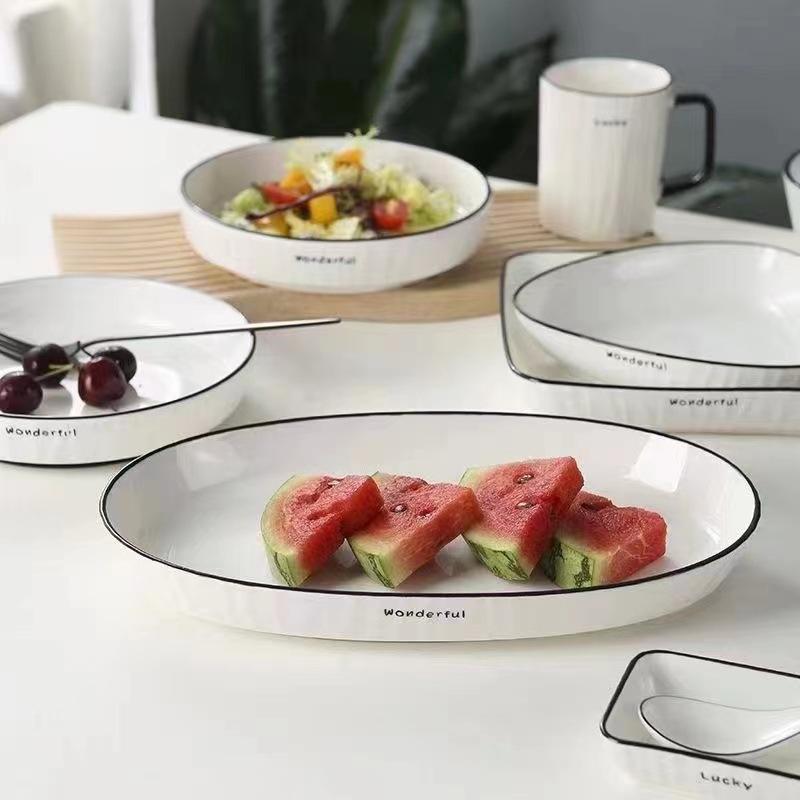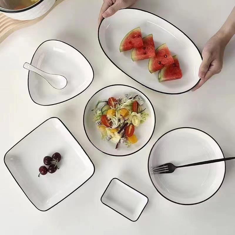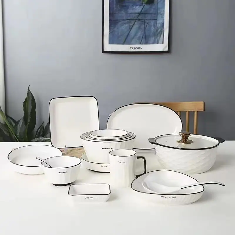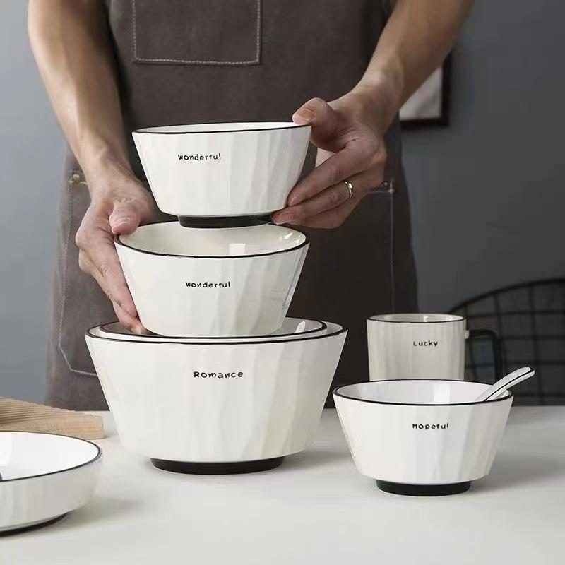 Compra Juego Completo de Plato y Tazón de Cerámica Serie Negra Tazón para Arroz Hogar Nivel Alto Estilo Nórdico Lujo Ligero Valor de Color Vajilla al por mayor en Joom.pro