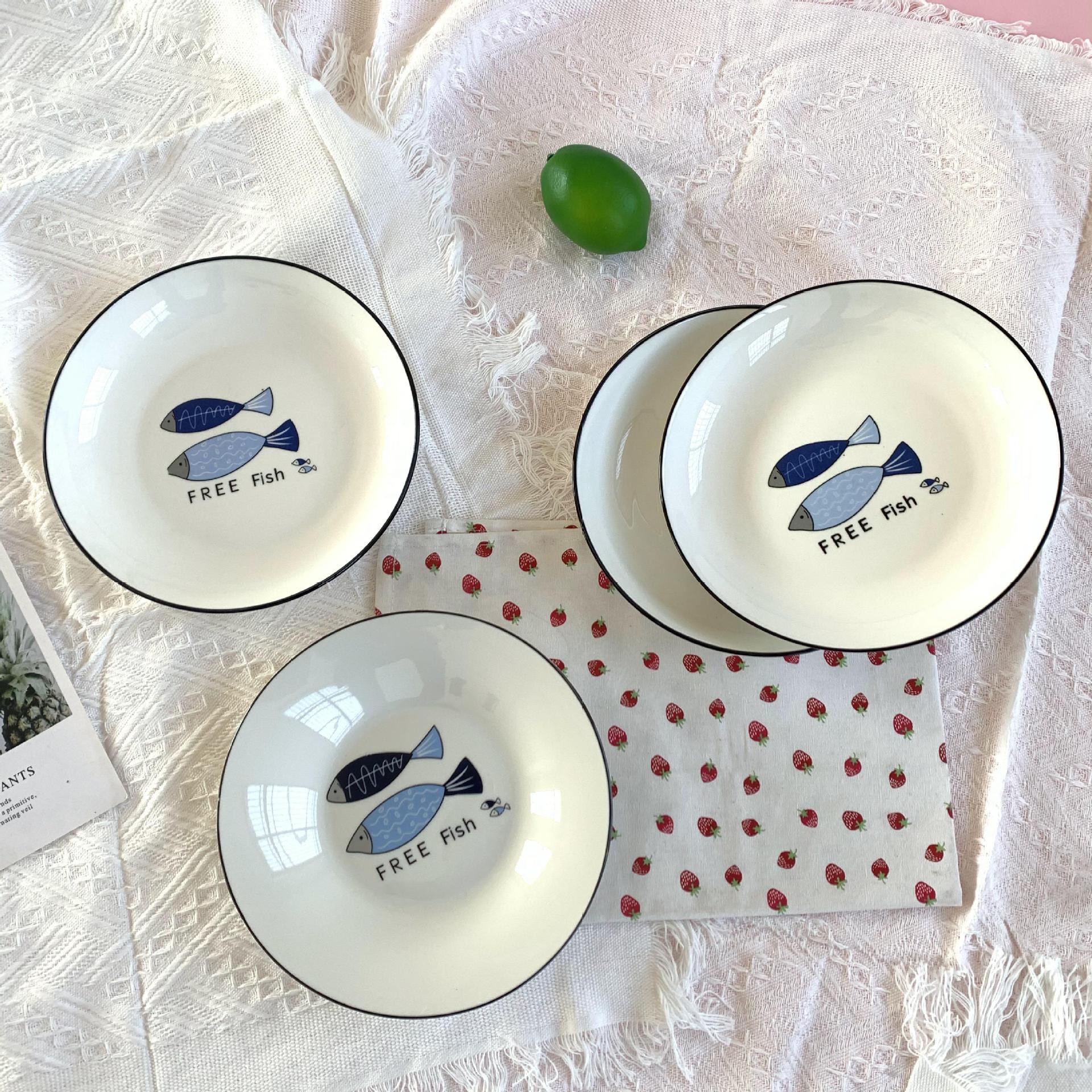 Small blue fish 8-inch soup plate 60 PCs/box, Small blue fish 8-inch rice plate 60 PCs/box