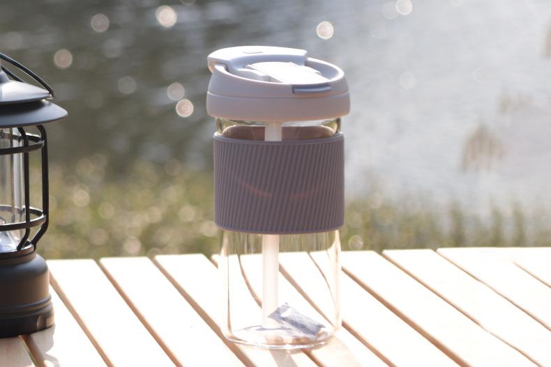 Taza de café doble para beber, actividad de apertura, regalo, taza con pajita, taza de vidrio de borosilicato para beber café, taza portátil con pajita