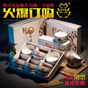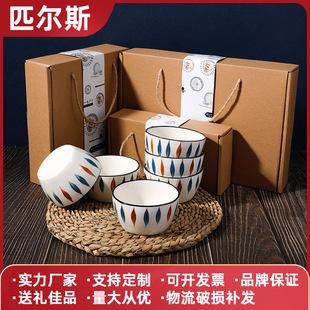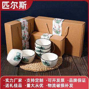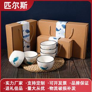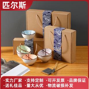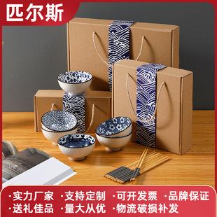 Ventas directas de fábrica vajilla de cerámica estilo japonés impresa tazón de regalo caja de regalo personalizado mayoreo regalo vajilla tazón y juego de palillos