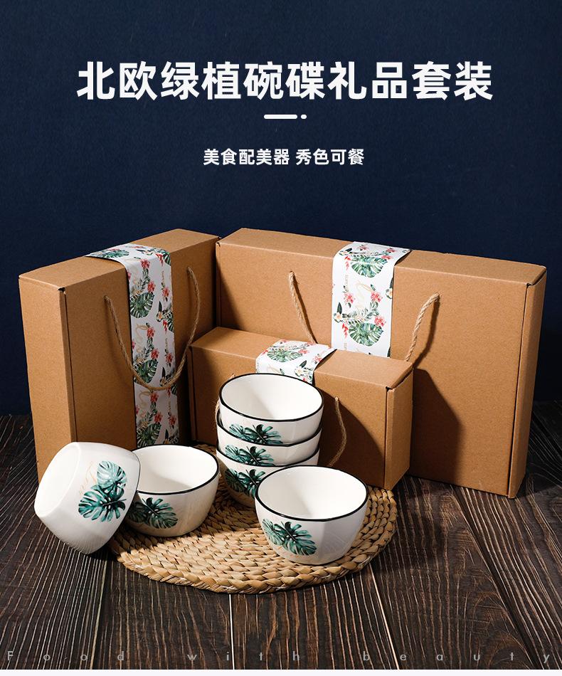 Ventas Directas de Fábrica Juego de Vajilla de Cerámica con Planta Verde Creativa Juego de Regalo Japonés Tazón Caja de Regalo Juego de Vajilla de Cerámica Lujo Ligero