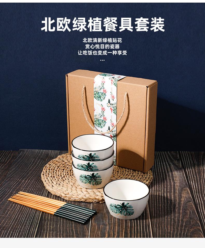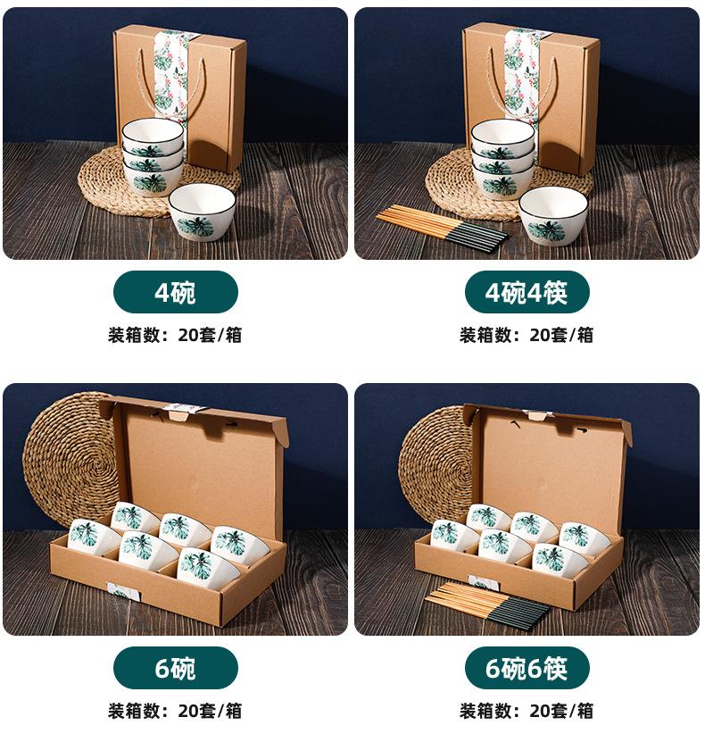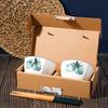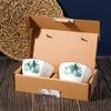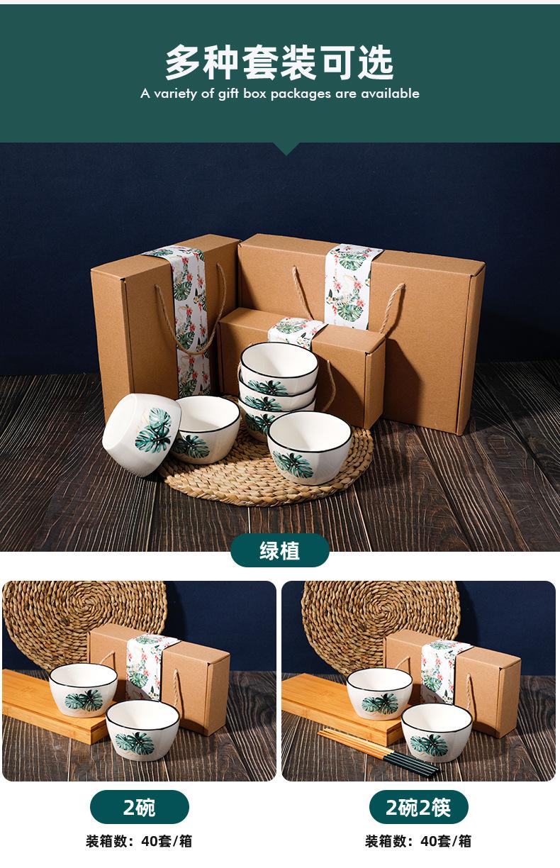 Ventas directas de fábrica juego de vajilla de cerámica con planta verde creativa regalo japonés caja de regalo personalizada juego de tazón y palillos de cerámica