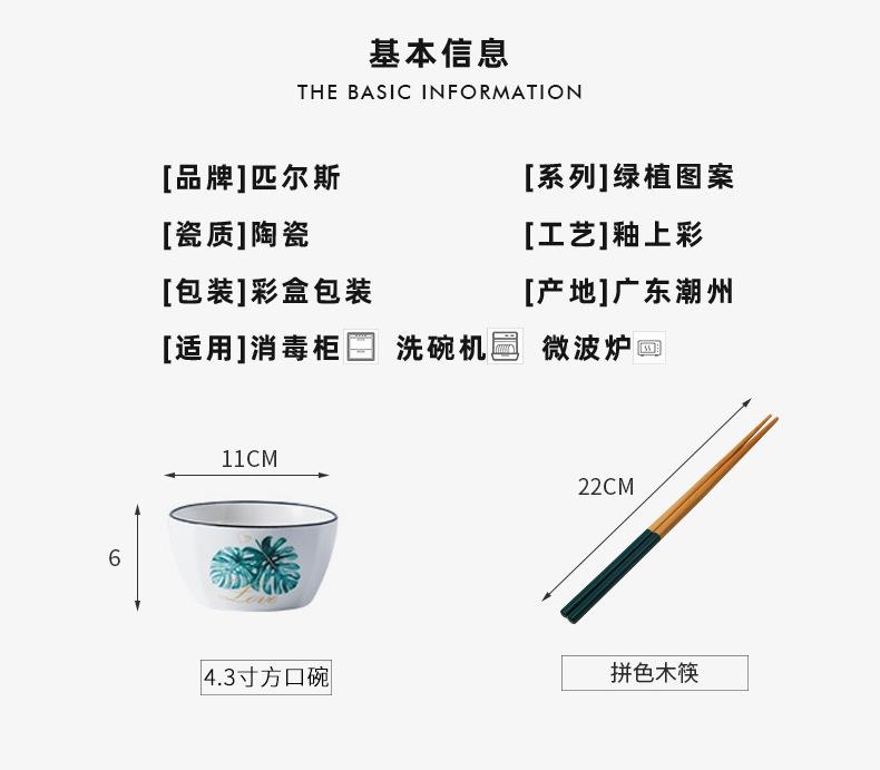 Green Plant Square Bowl suit-2 bowls (40 sets/box), Green Plant Square Bowl suit-2 bowls and chopsticks (40 se...