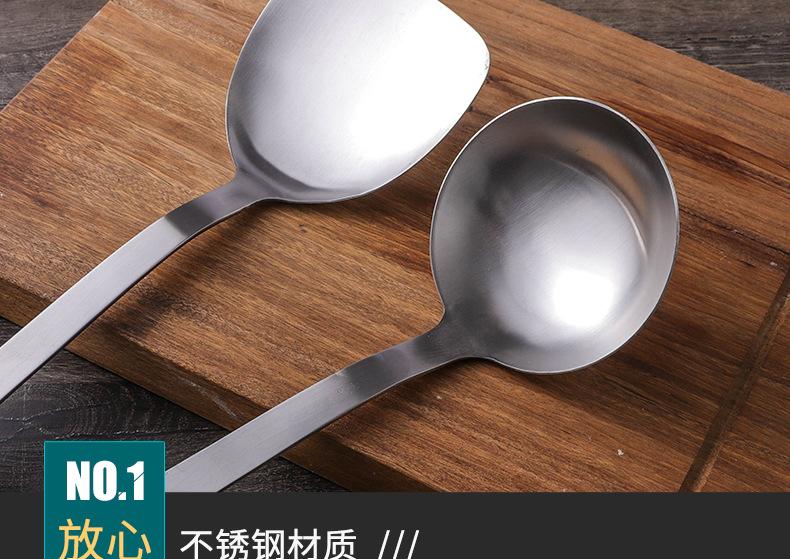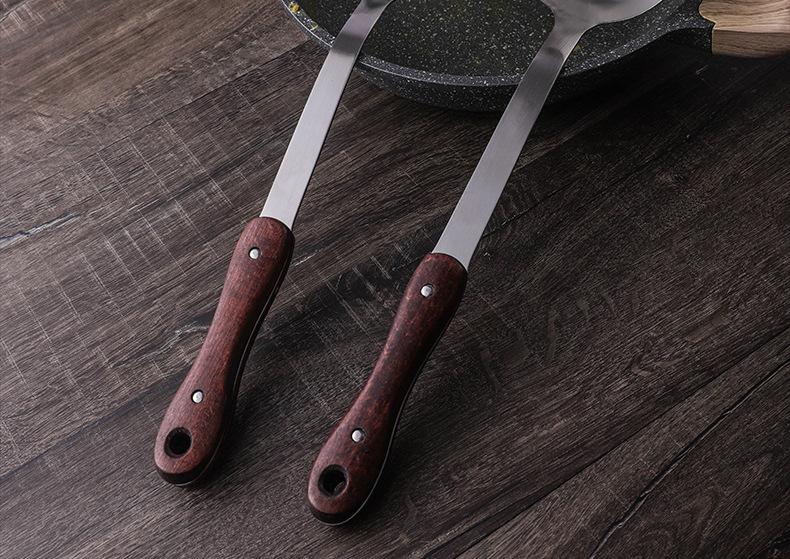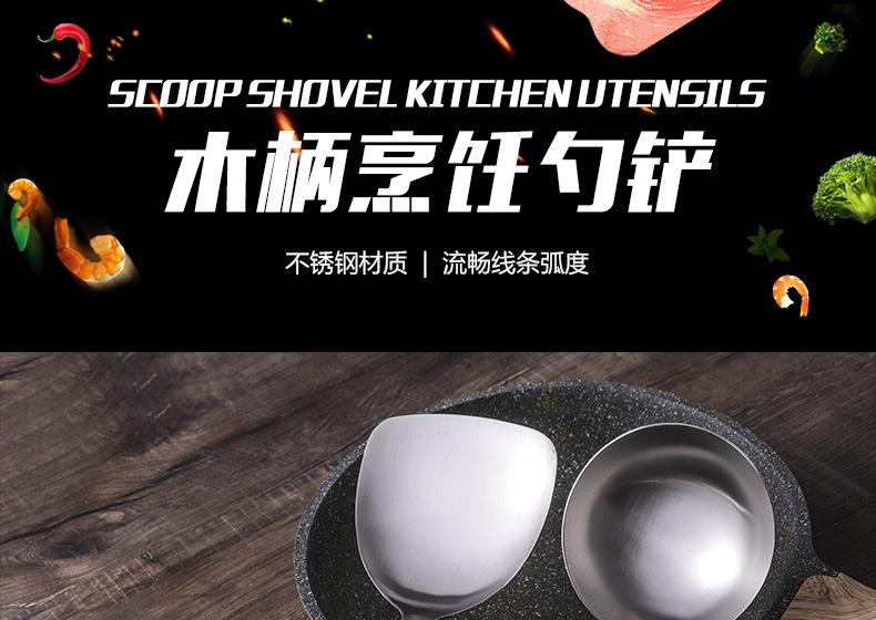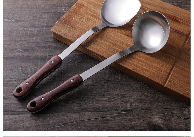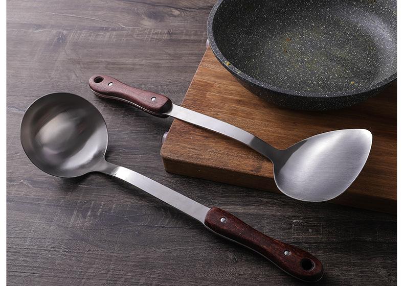Espátula de acero inoxidable con mango de madera, cuchara sopera, juego de utensilios de cocina para el hogar, espátula de cocina anti-escaldaduras, cuchara de cocina, espátula, utensilios de cocina