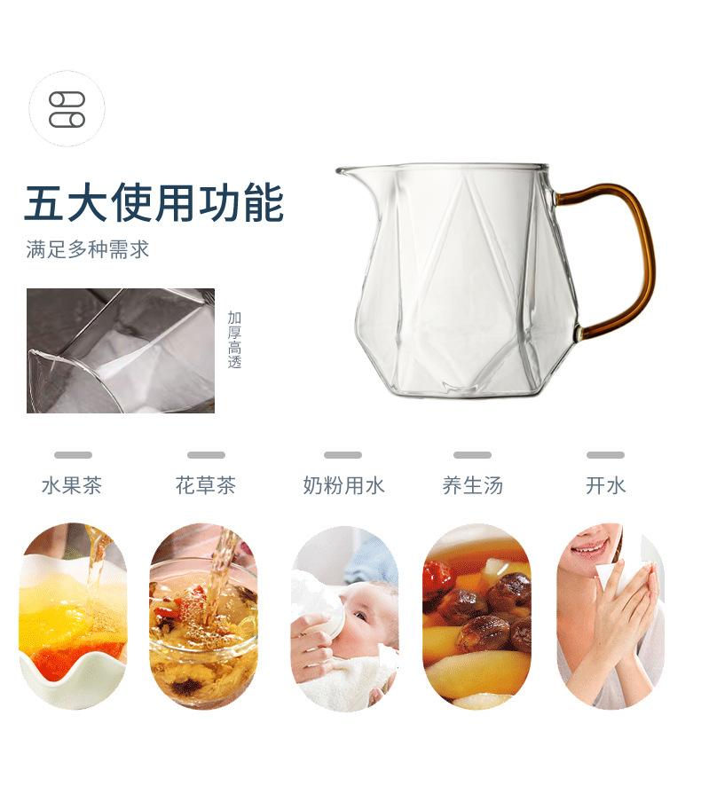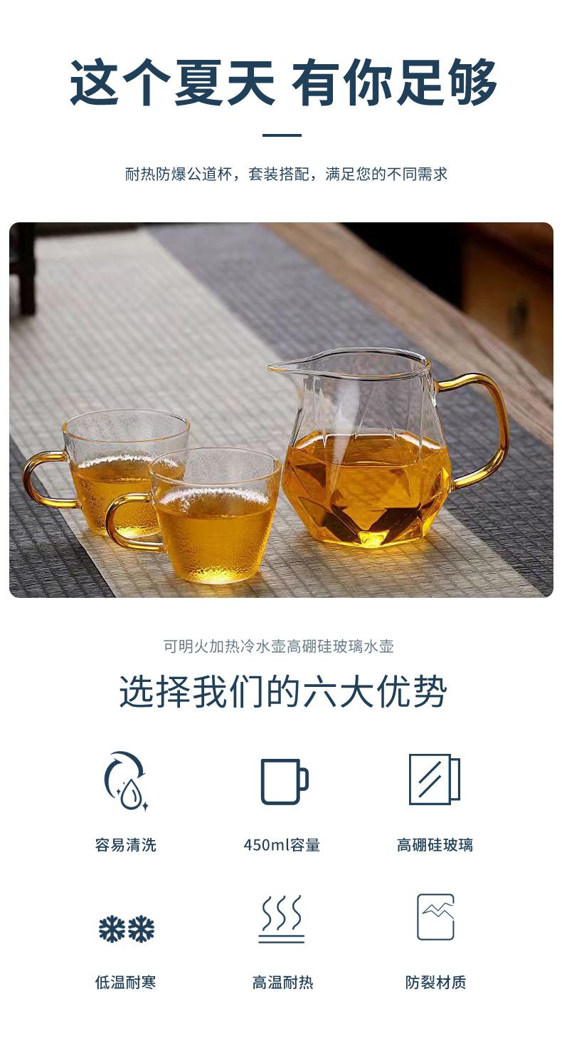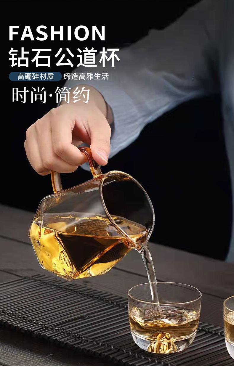 Copa de equidad de diamante de vidrio resistente al calor copa de equidad para el hogar transparente taza para agua fría tetera tetera de flores estilo japonés taza de red