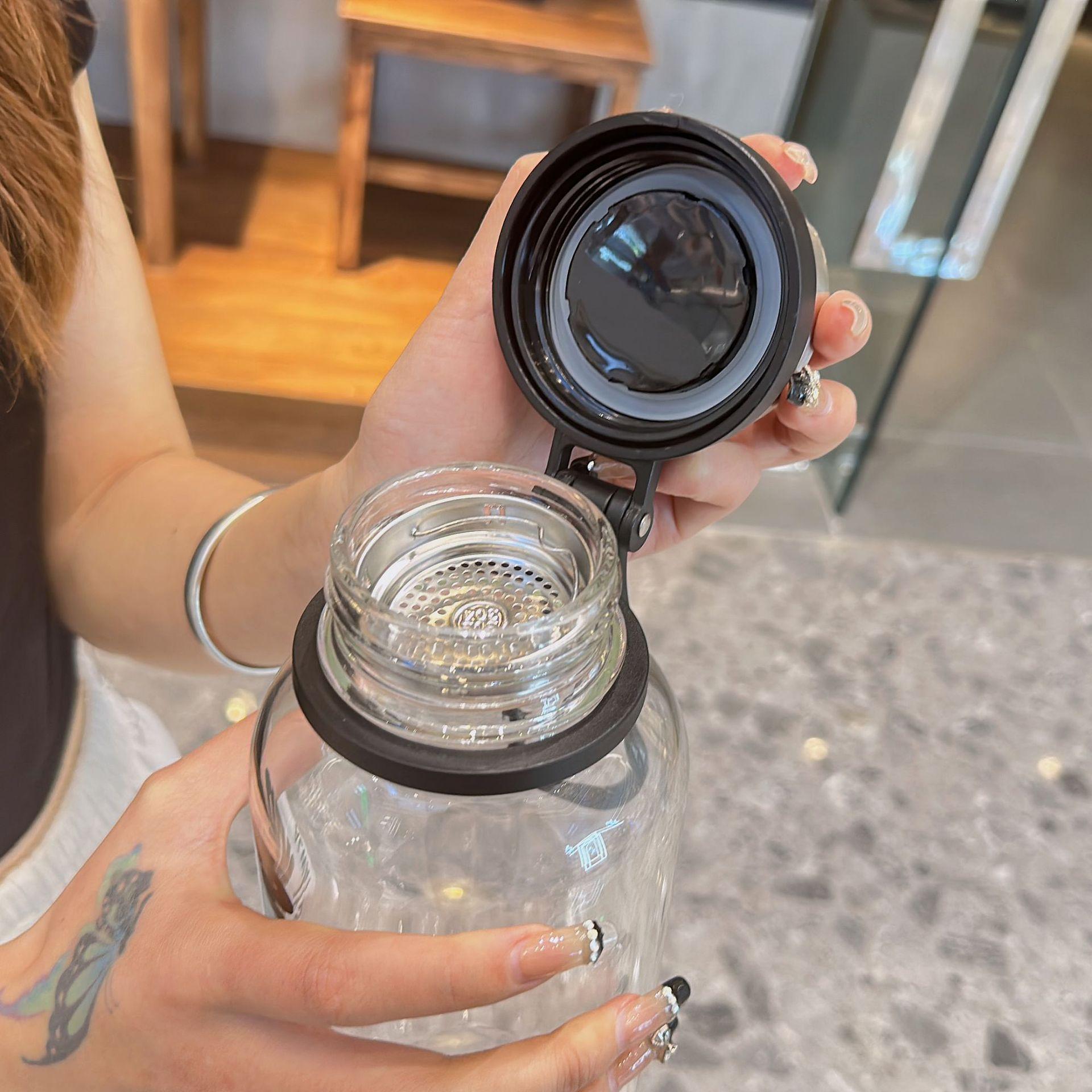 Vaso de agua de vidrio de borosilicato resistente al calor de gran capacidad con colador para hombres y mujeres, taza de té tropical con separación.
