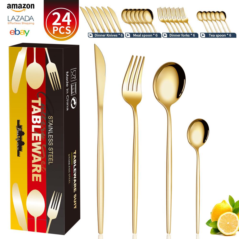 Suministro transfronterizo de cuchillo y tenedor de acero inoxidable Juego de vajilla portuguesa de regalo Cuchillo y tenedor para carne occidental dorado Cuchara Tenedor