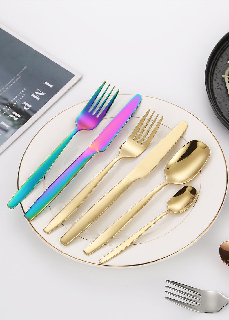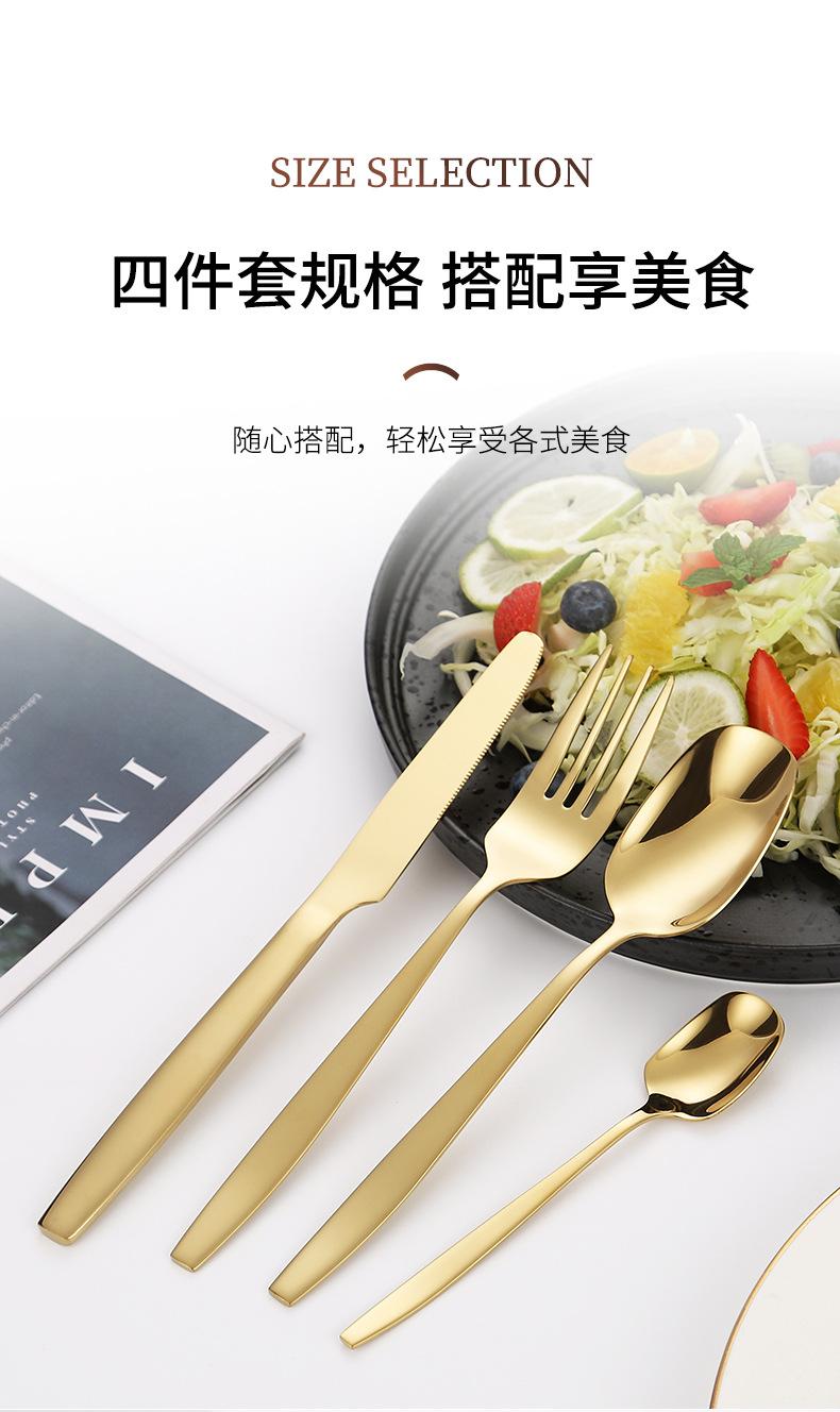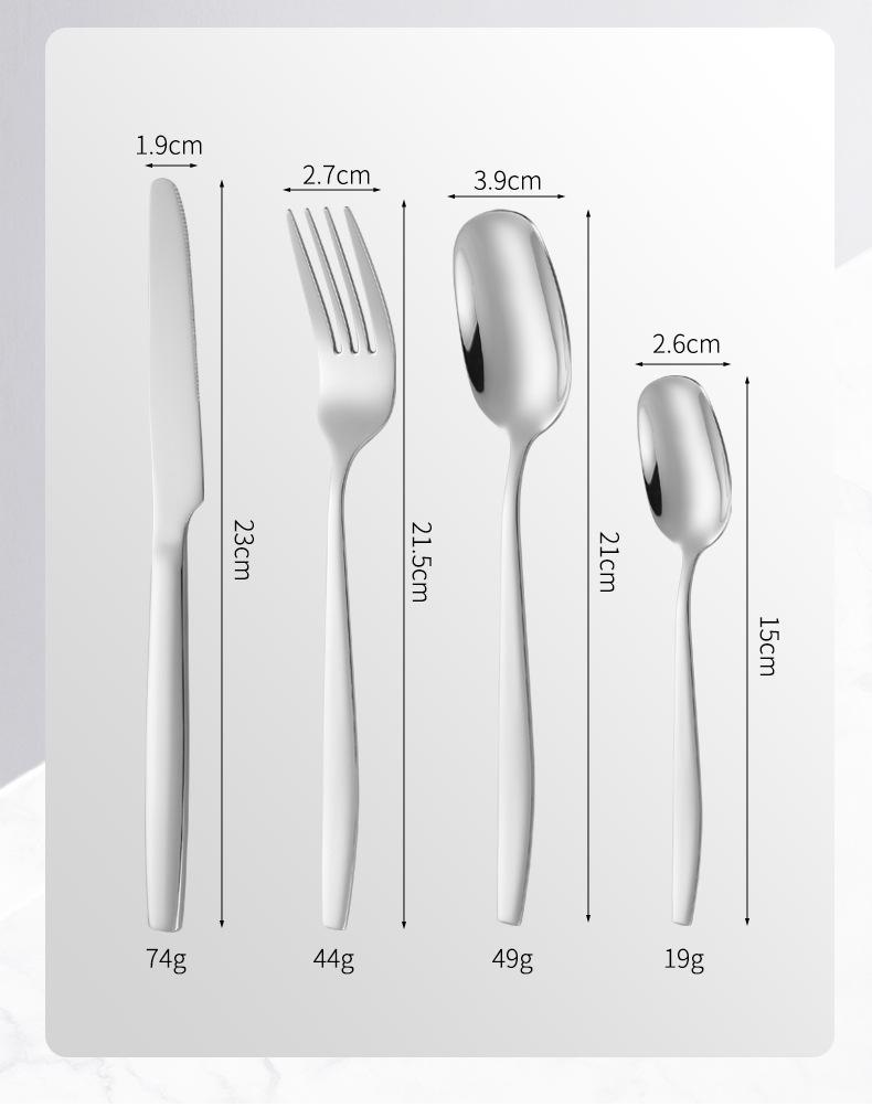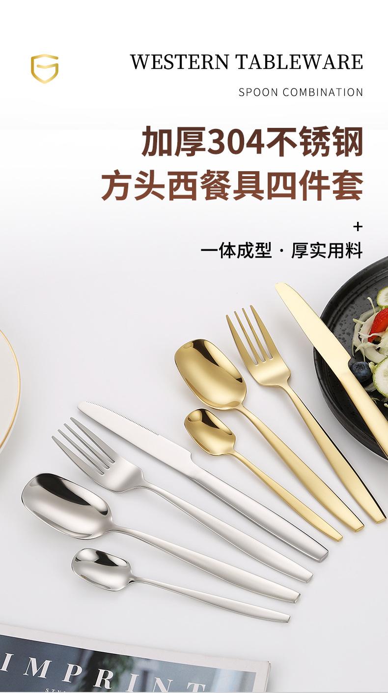 Juego de cuchillo, tenedor y cuchara de cabeza cuadrada de acero inoxidable 304, vajilla occidental con revestimiento de titanio espejado, cuchillo para carne creativo, tenedor y cuchara, cuatro piezas