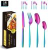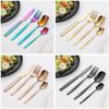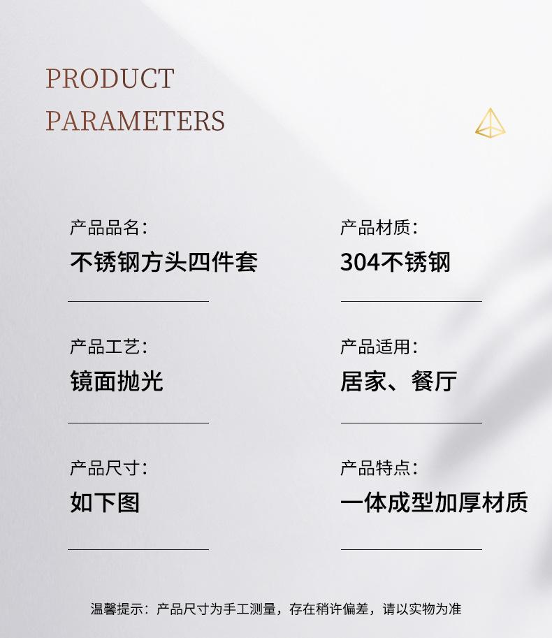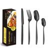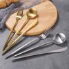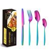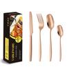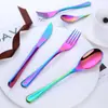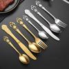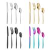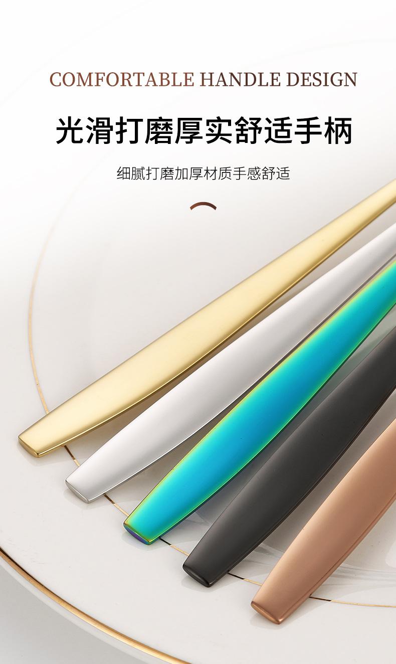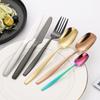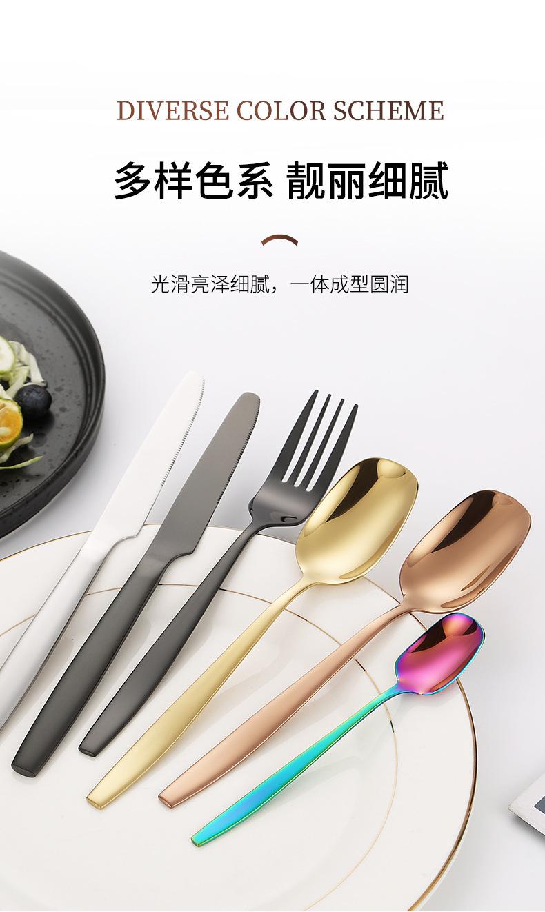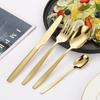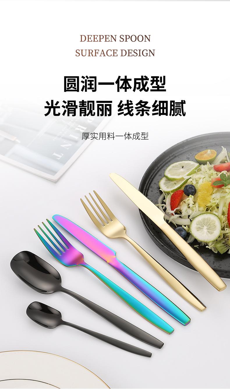 Juego de cuchillo, tenedor y cuchara de cabeza cuadrada de acero inoxidable 304, vajilla occidental con revestimiento de titanio espejado, cuchillo para carne creativo, tenedor y cuchara, cuatro piezas