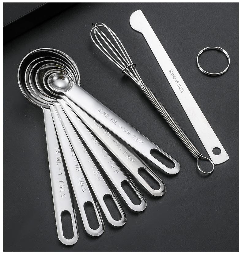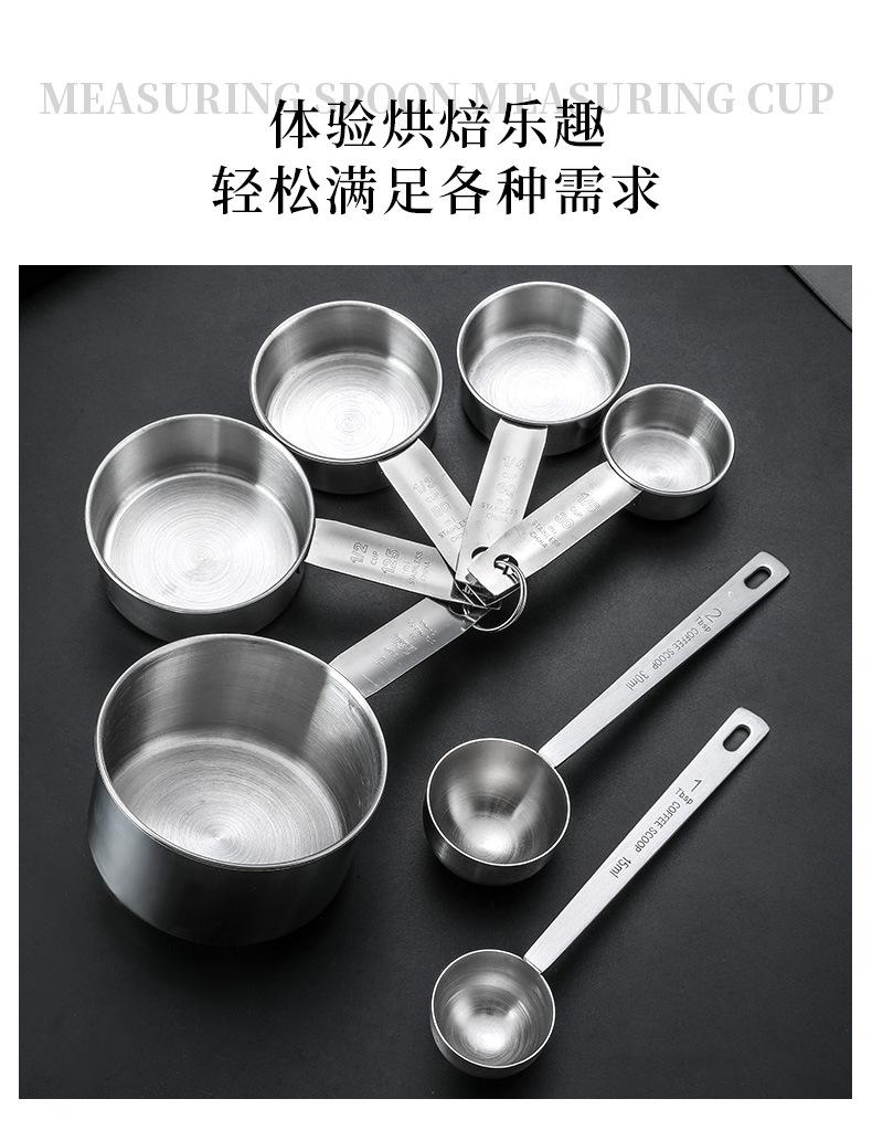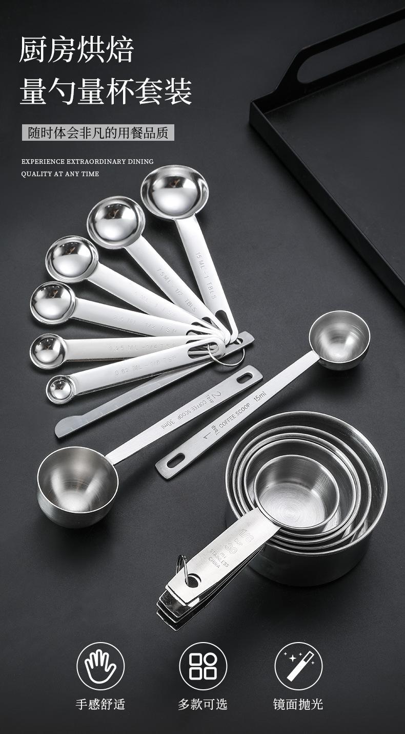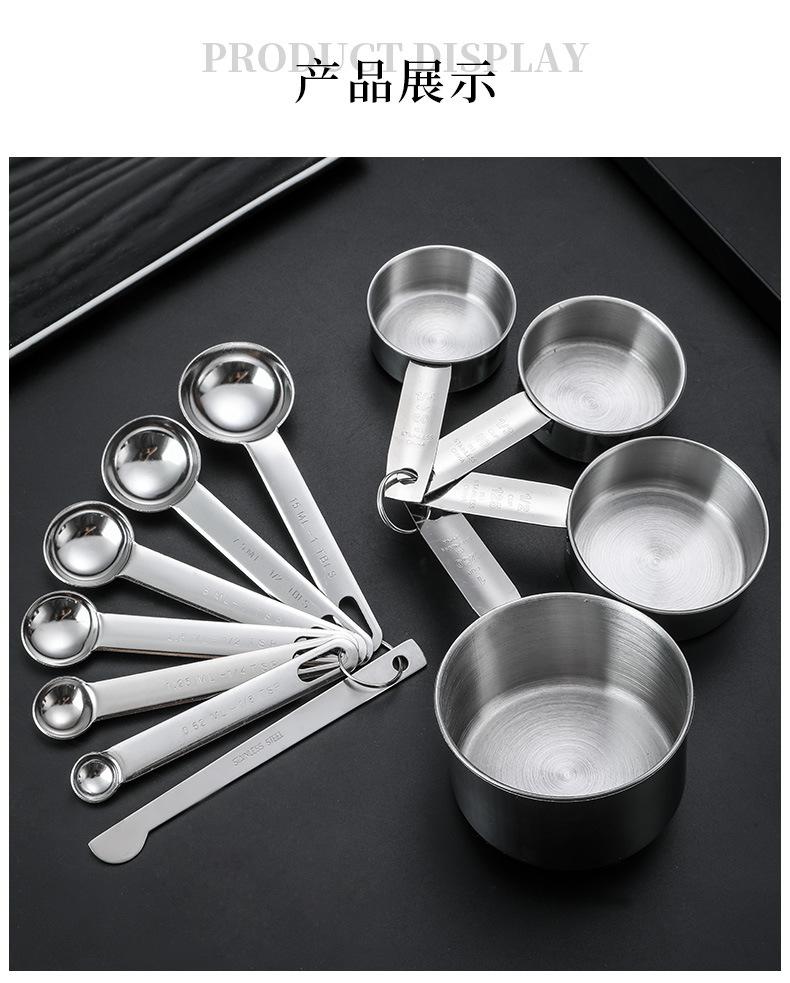 Cuchara Medidora de Acero Inoxidable Transfronteriza Juego de Tazas Medidoras Herramientas de Cocina para Hornear Medición con Escala con Cuchara Medidora de Condimentos Cuchara Medidora