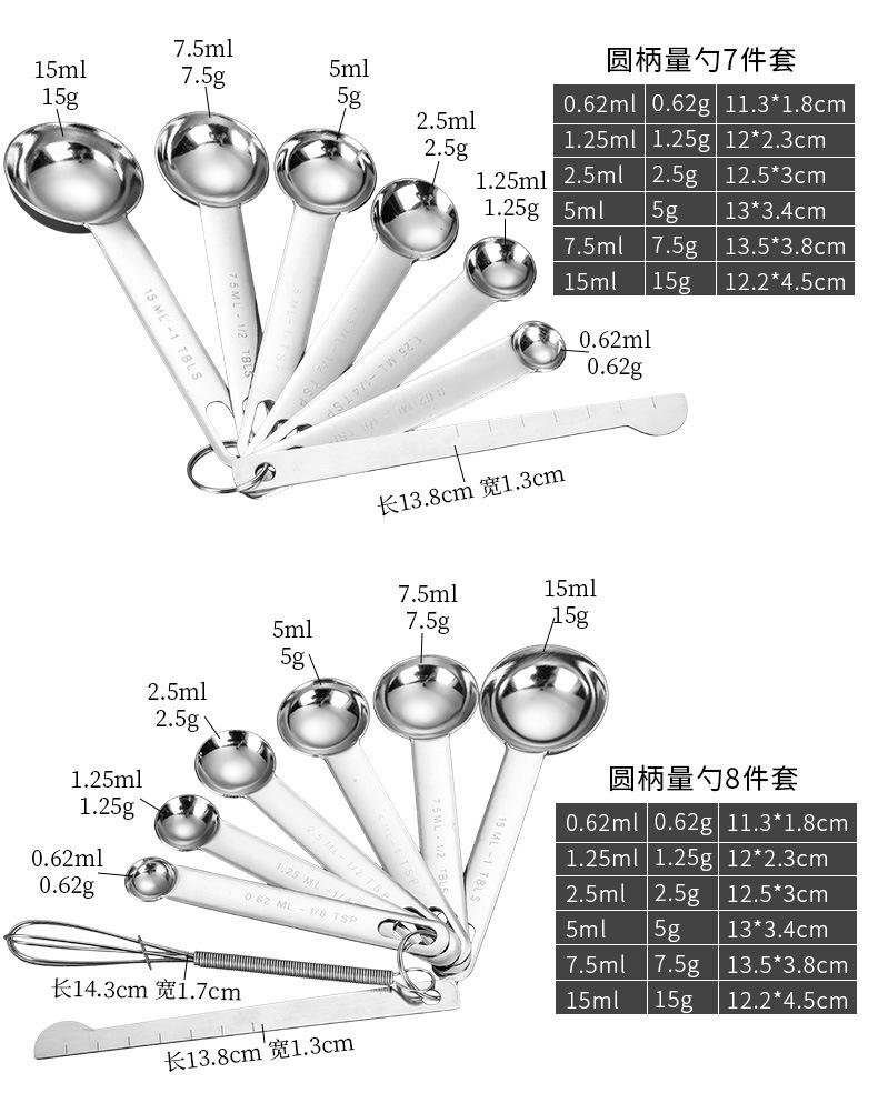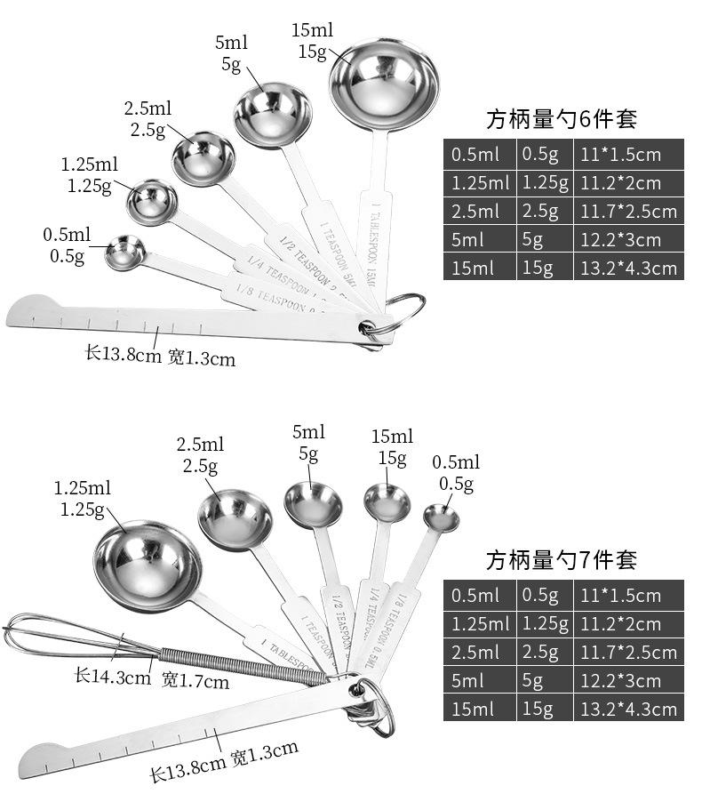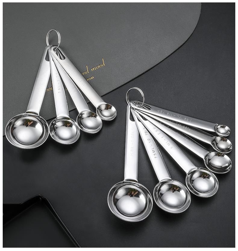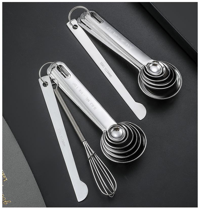 Cuchara Medidora de Acero Inoxidable Transfronteriza Juego de Tazas Medidoras Herramientas de Cocina para Hornear Medición con Escala con Cuchara Medidora de Condimentos Cuchara Medidora
