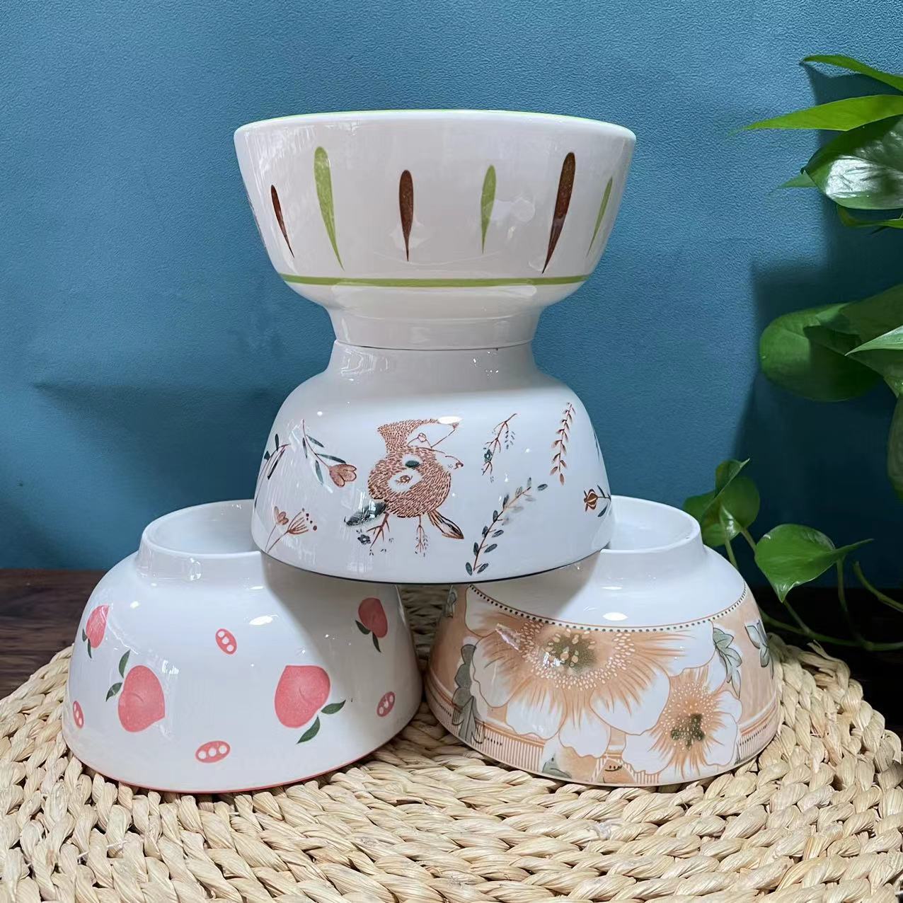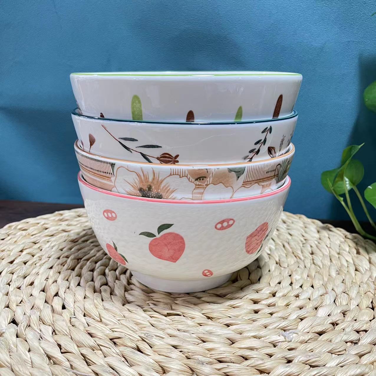 Tazón de cerámica para fideos de Shanxi con impresión bajo cubierta, tazón de cerámica para ensalada de 6 pulgadas, tazón grande para fideos para el hogar, vajilla fresca multidimensional