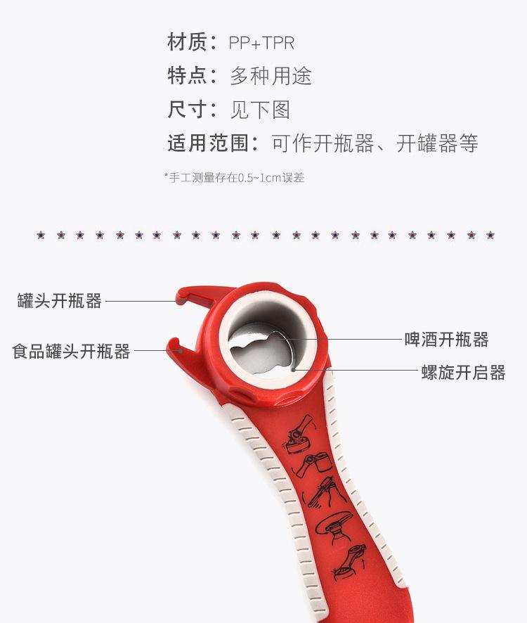 Nuevo abridor de botellas multifuncional cuatro en uno, grande y pequeño, para cocina doméstica, con giro antideslizante