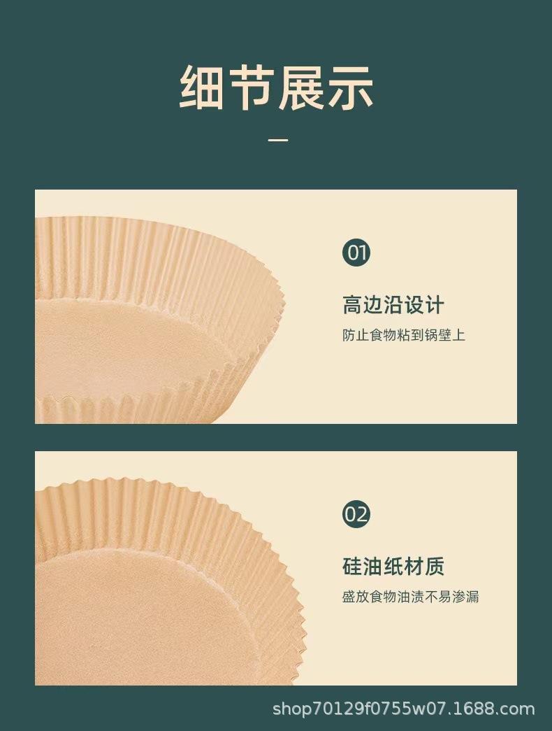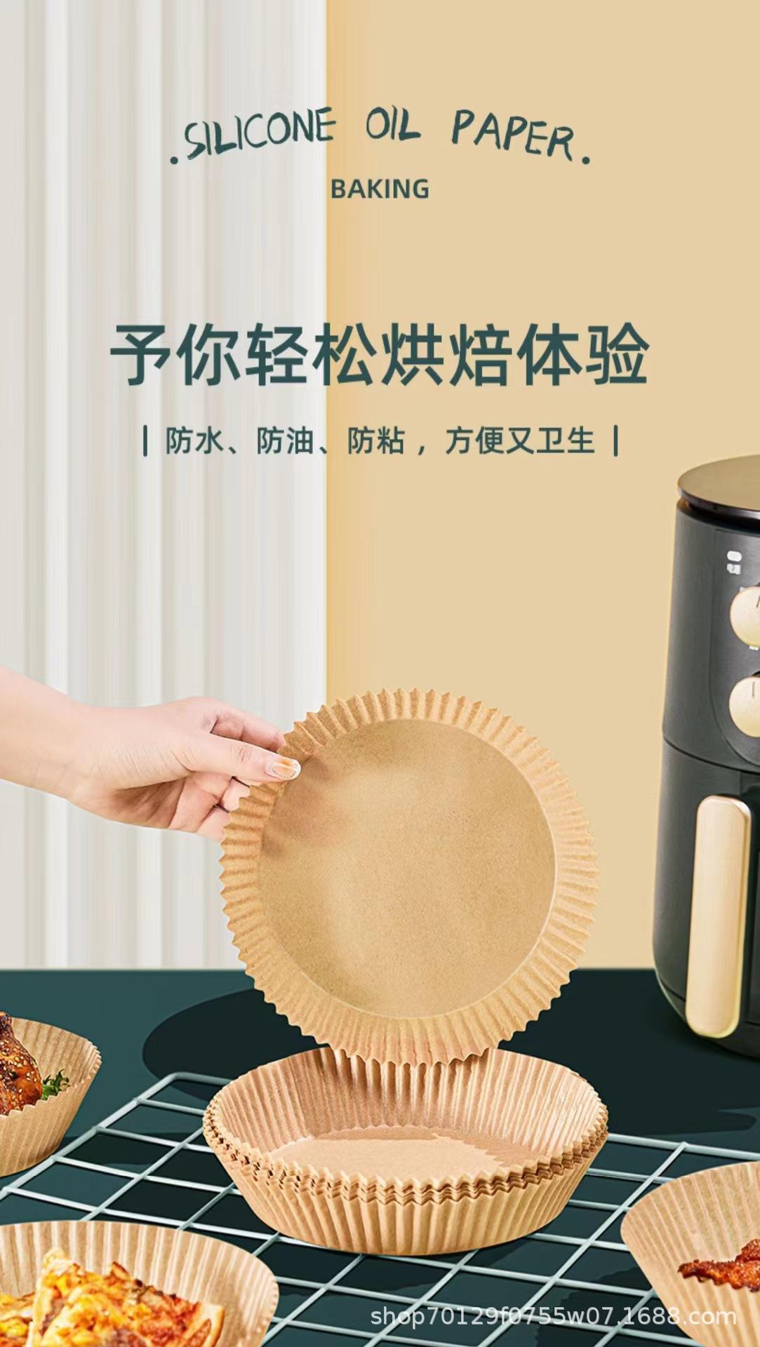 Plato de papel especial para freidora de aire doméstica, resistente a altas temperaturas, absorbente de aceite, para hornear alimentos en horno, papel de silicona para aceite, barbacoa, redondo