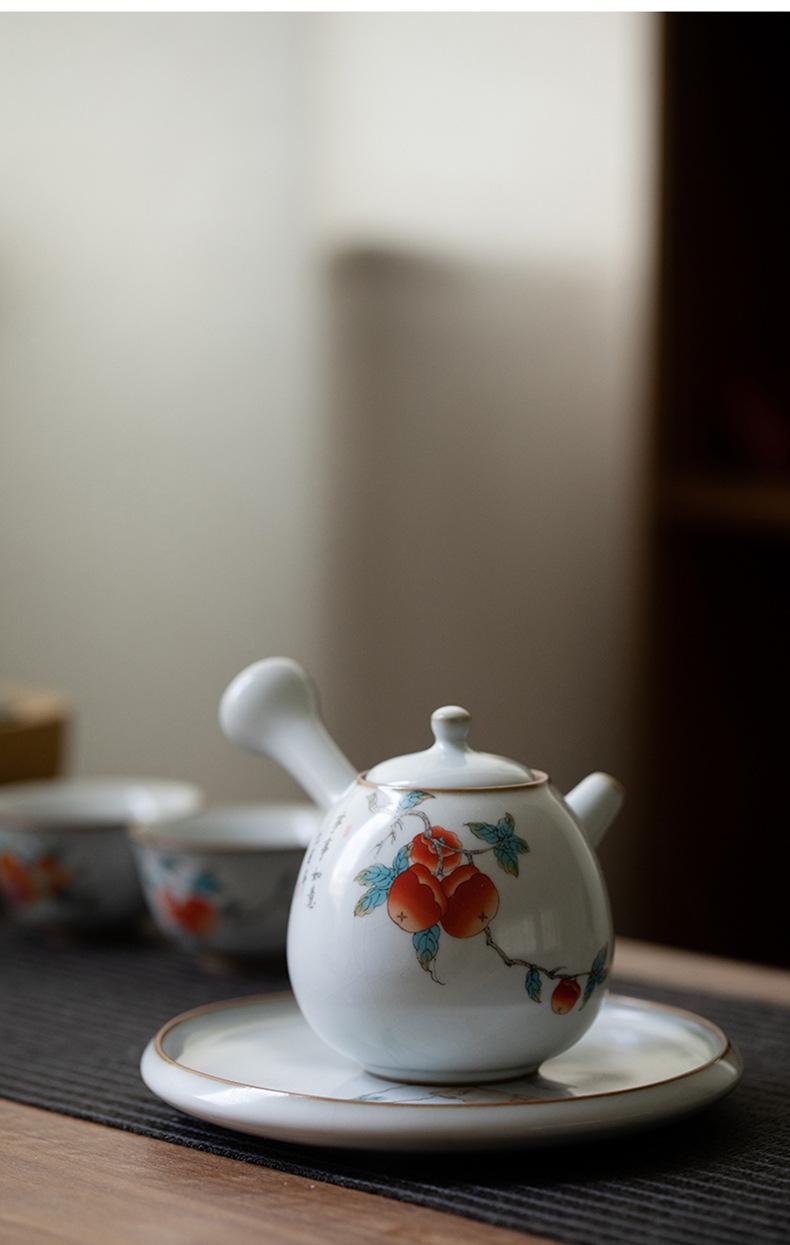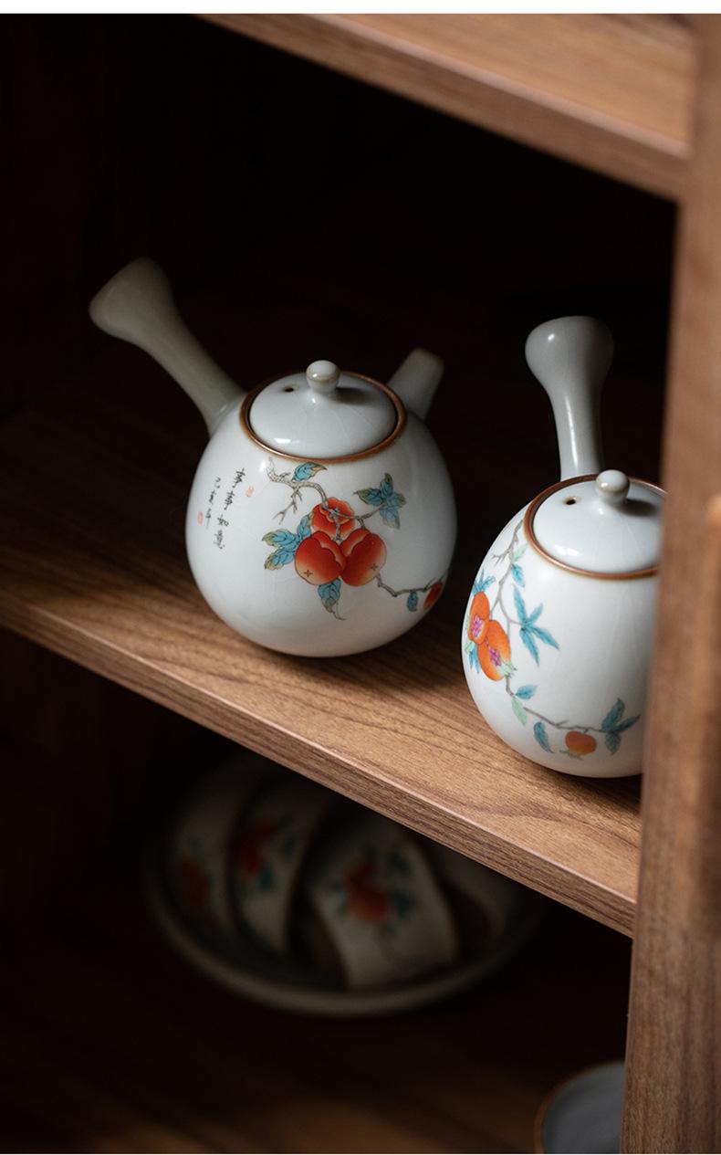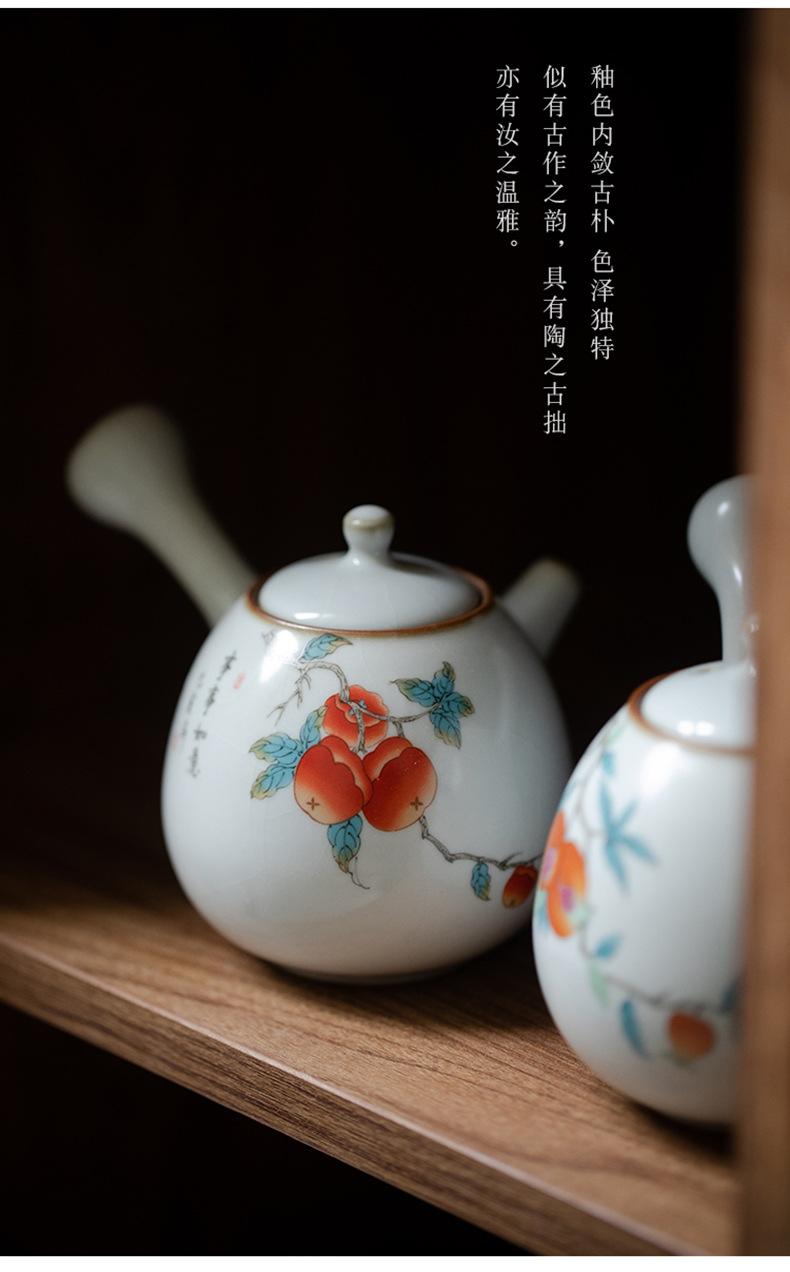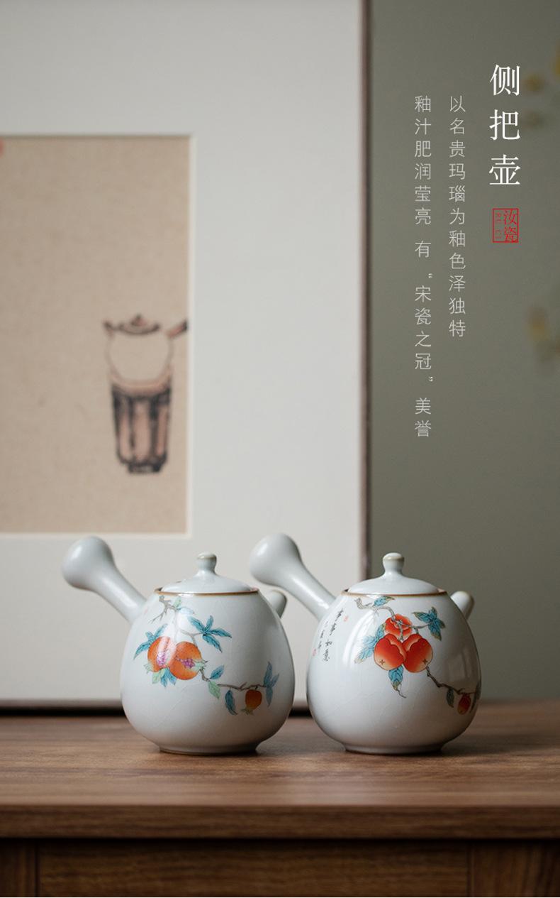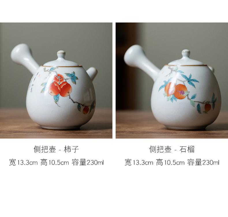 Tetera antigua de caqui con horno Ru, tetera lateral de apertura natural, juego de té de porcelana, juego de té de kung fu para el hogar, tetera