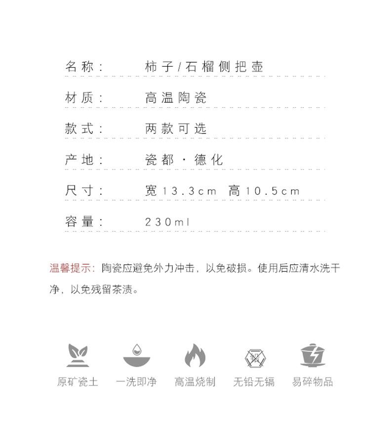Side handle pot-Persimmon, Side Pot-Pomegranate