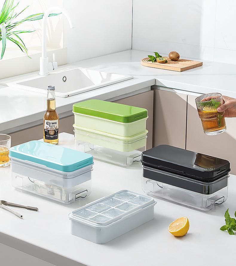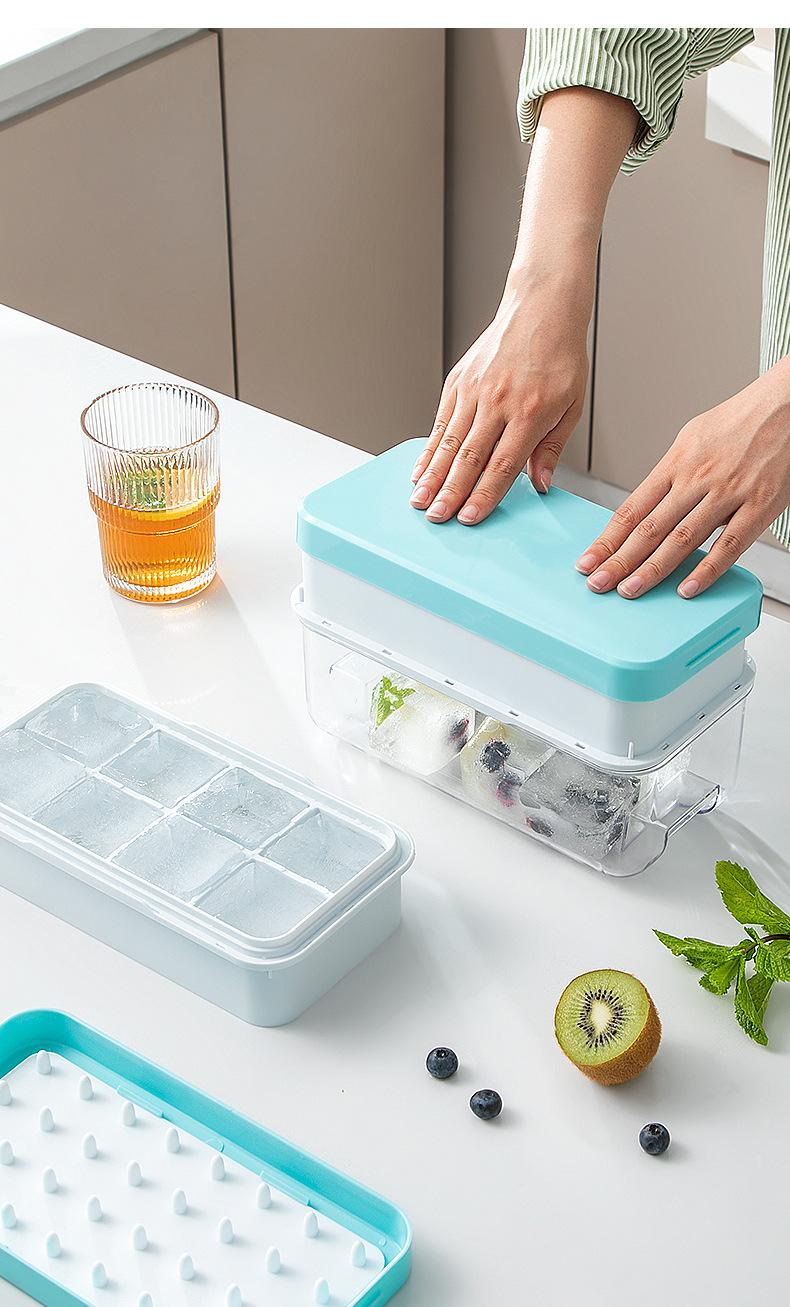 Molde de bandeja de hielo de silicona para refrigerador doméstico, cubitos de hielo congelados, caja de almacenamiento de hielo de grado alimenticio, prensa perezosa, prensa de hielo, caja de hielo
