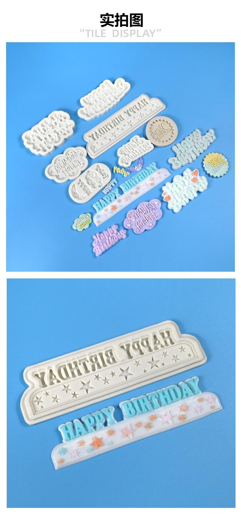 Compra Molde de silicona para fondant con forma de tarjeta con palabras en inglés "Feliz cumpleaños", molde para decoración de tartas de "Feliz cumpleaños", molde de chocolate al por mayor en Joom.pro