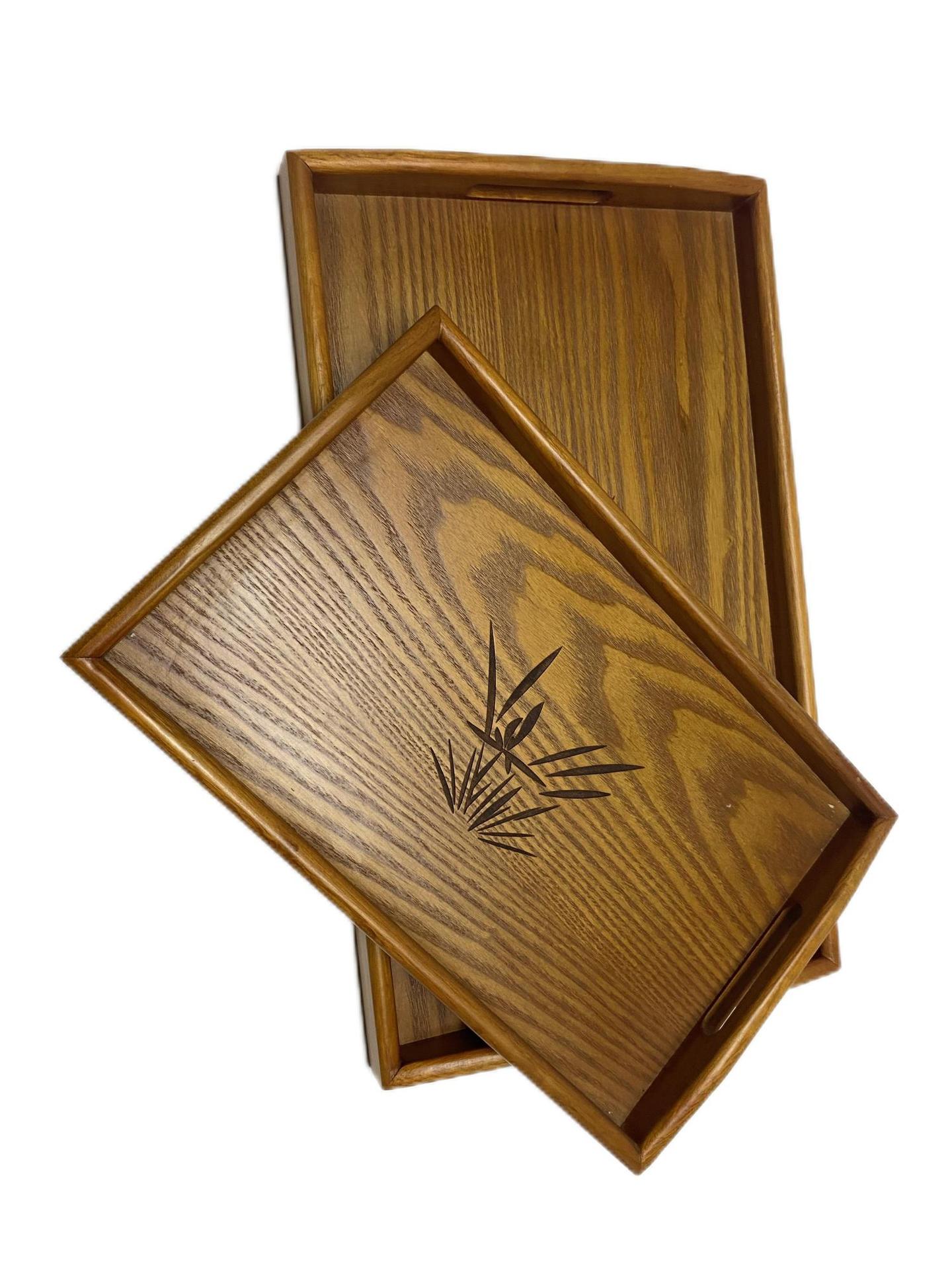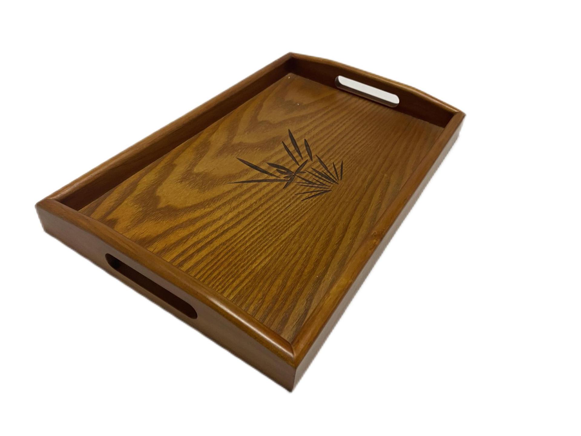 Bandeja de Madera de Orquídea Japonesa Rectangular Bandeja de Hotel con Orejas Portátil Té Vintage Bandeja de Té con LOGO Grabado