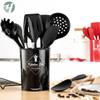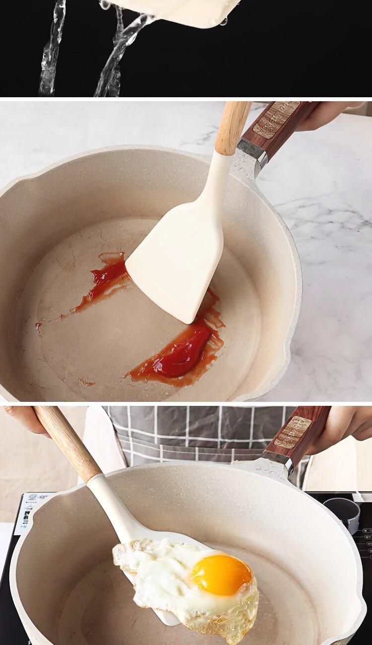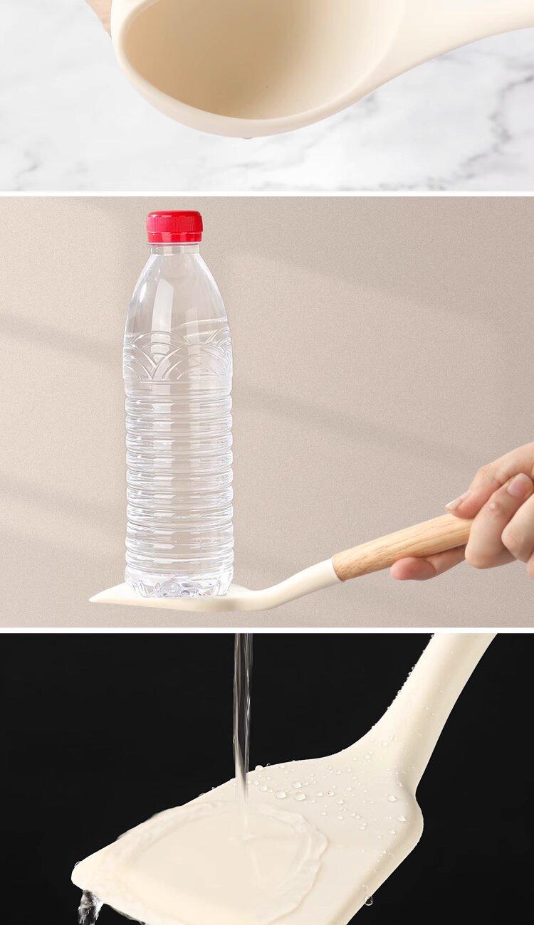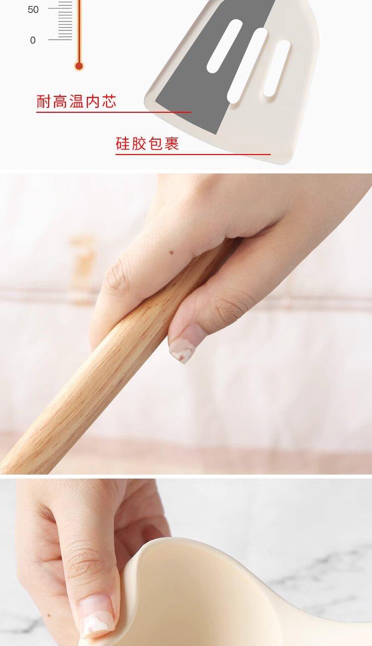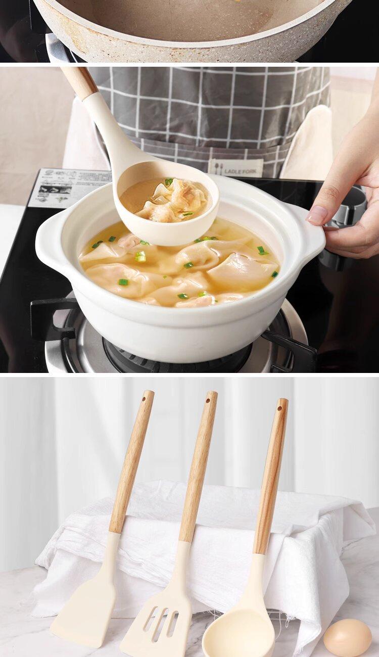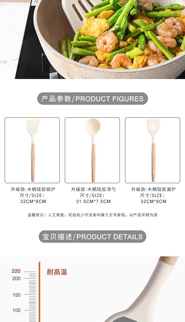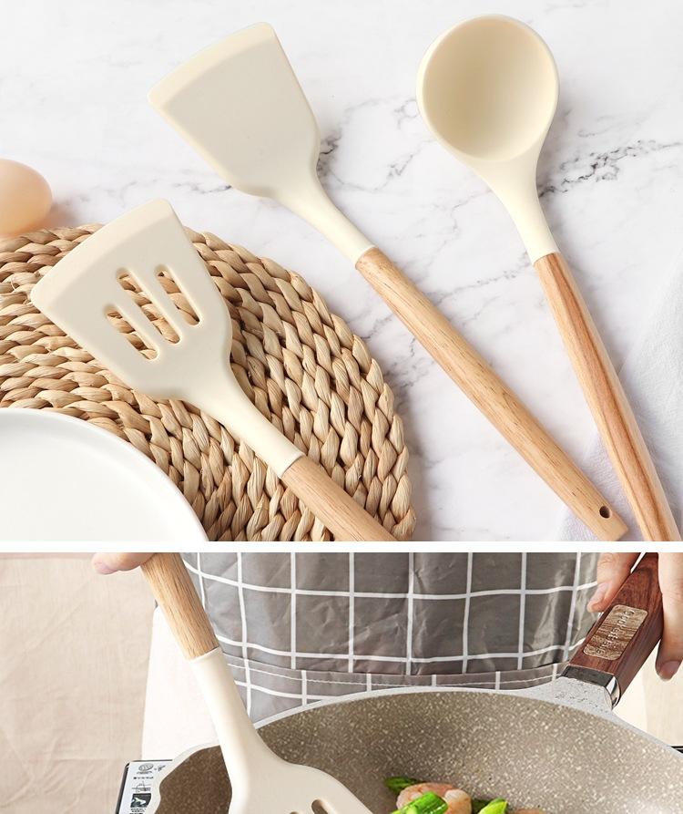 Juego de utensilios y herramientas de cocina con mango de madera antiadherente, de silicona antideslizante, para saltear, cuchara y pala.