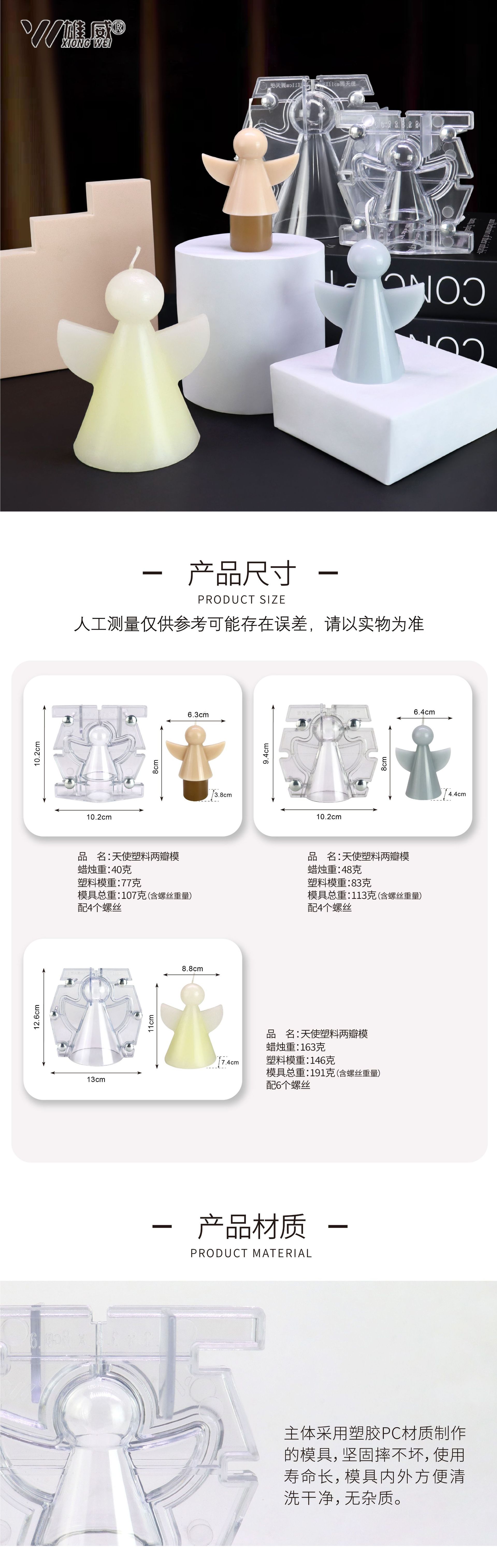 Xiongwei DIY Molde de vela de ángel acrílico de plástico hecho a mano PC Dos piezas DIY Molde de vela de ángel simple