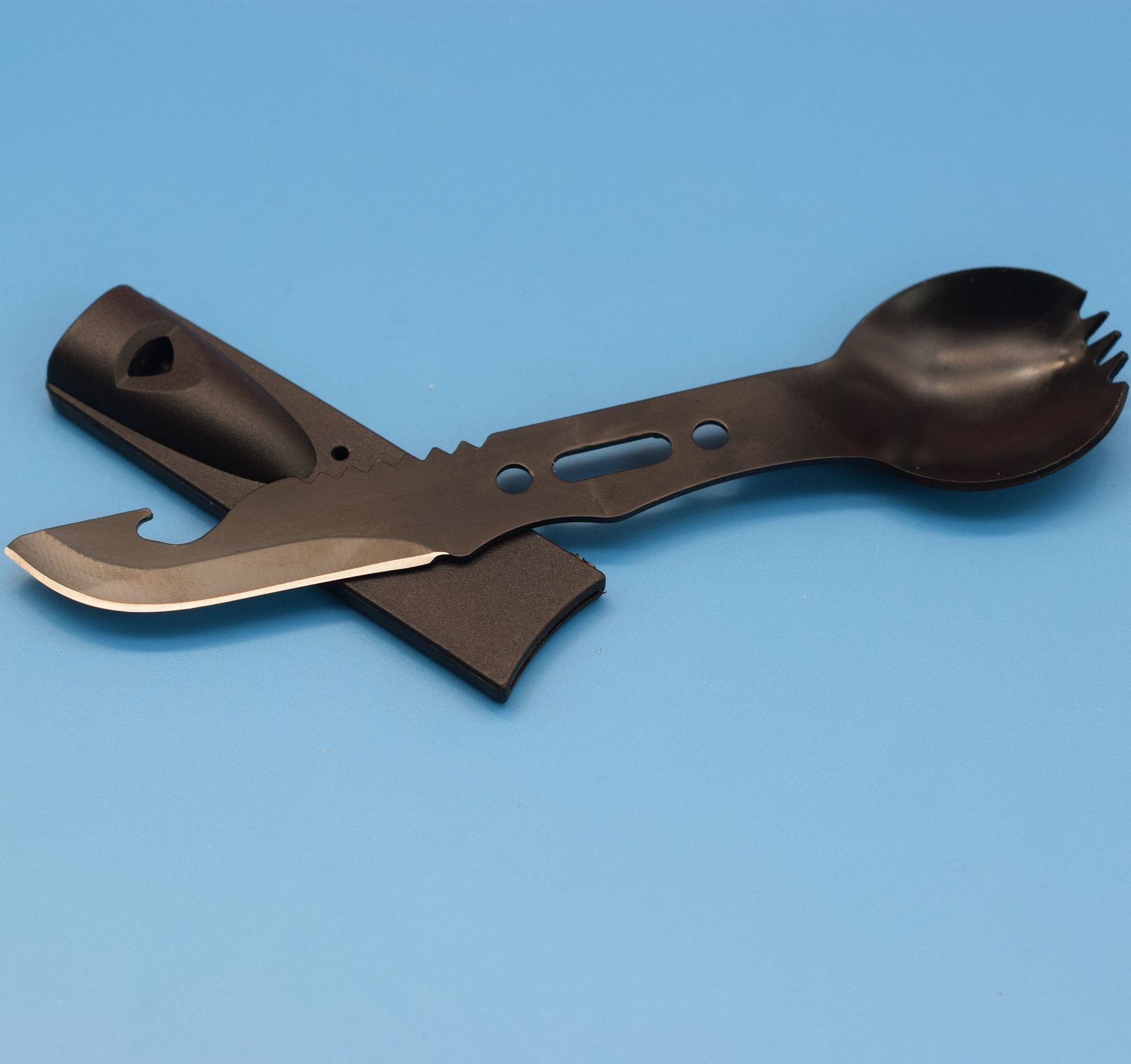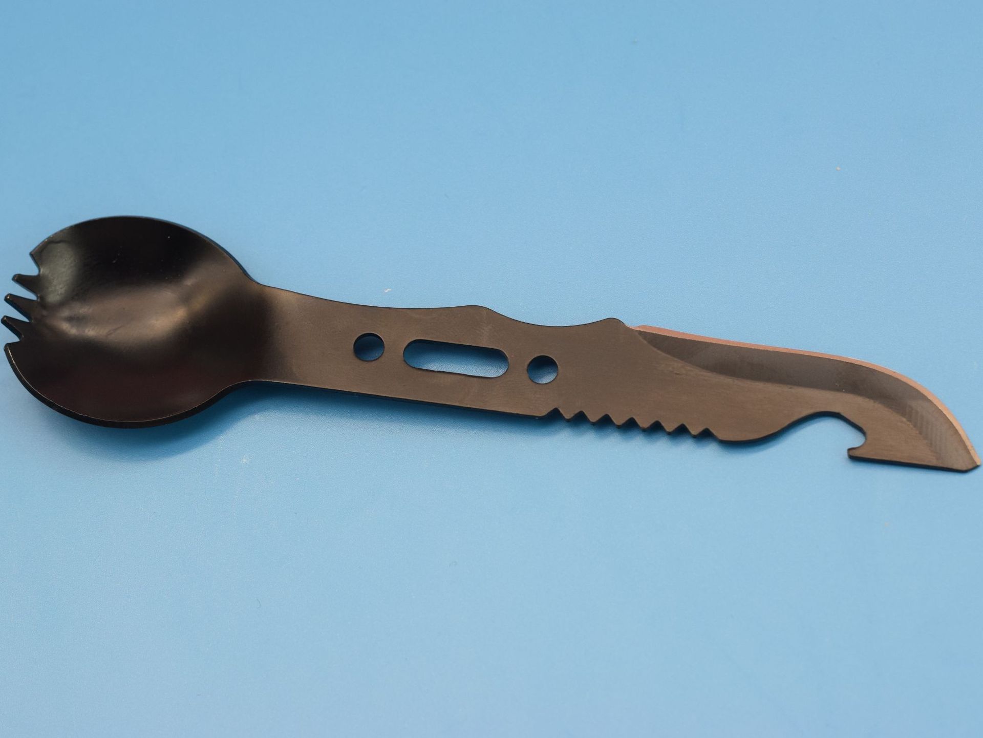 Cuchara Multifuncional de Campo Acero Inoxidable Tenedor Cuchara Integrado Portátil Vajilla de Camping Silbato Plegable Cuchillo y Tenedor Cuchara Comedor al Aire Libre