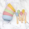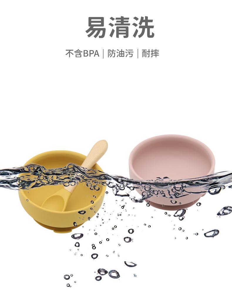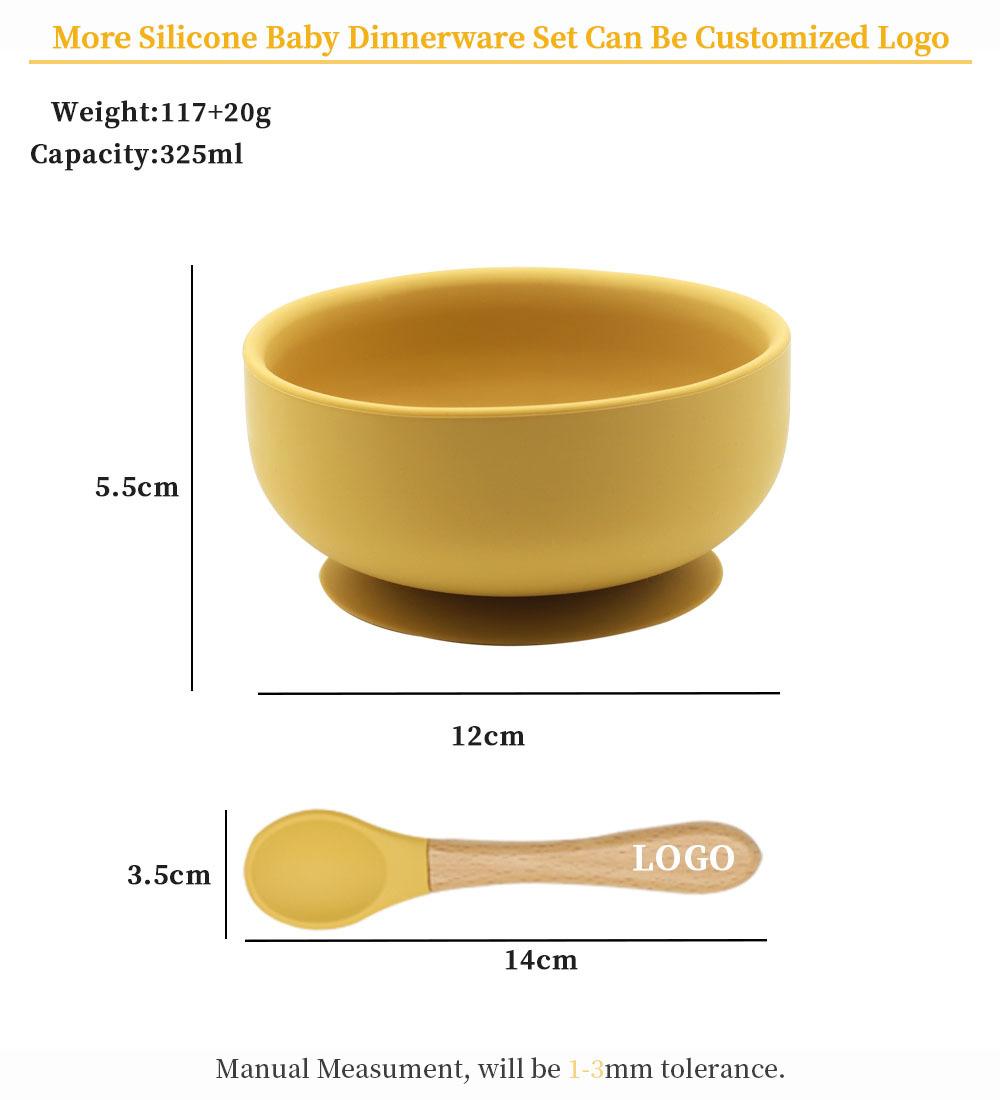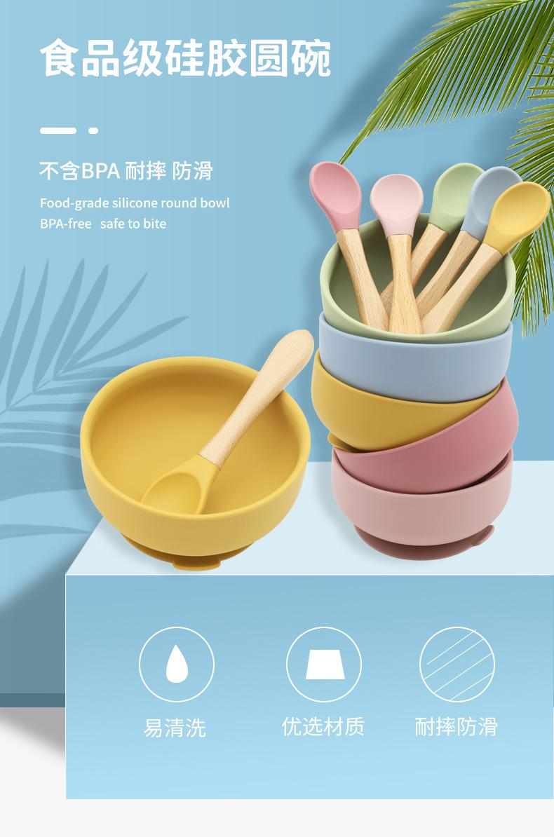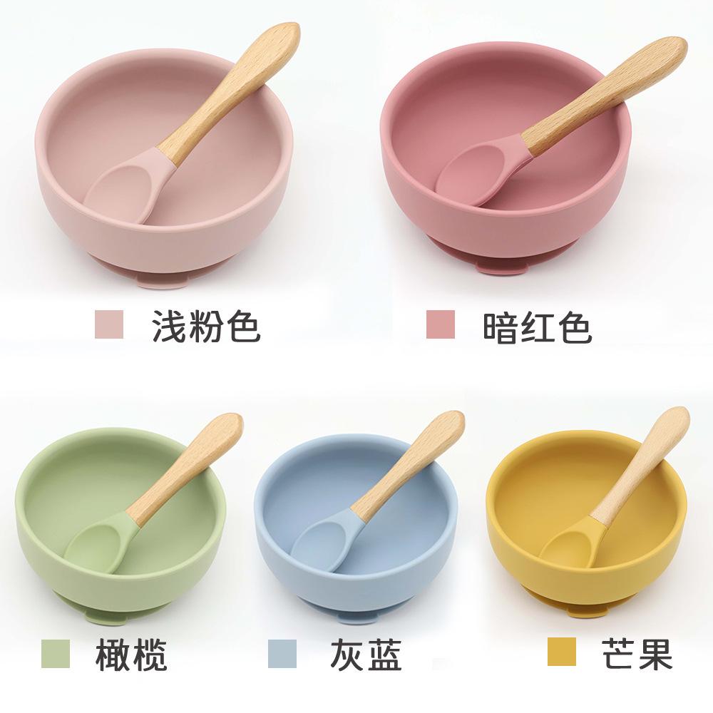 Cuenco de suplemento alimenticio para bebés, cuchara de madera, vajilla adecuada para alimentos para bebés, tazón de silicona con ventosa fuerte, venta al por mayor en Amazon, gran oferta