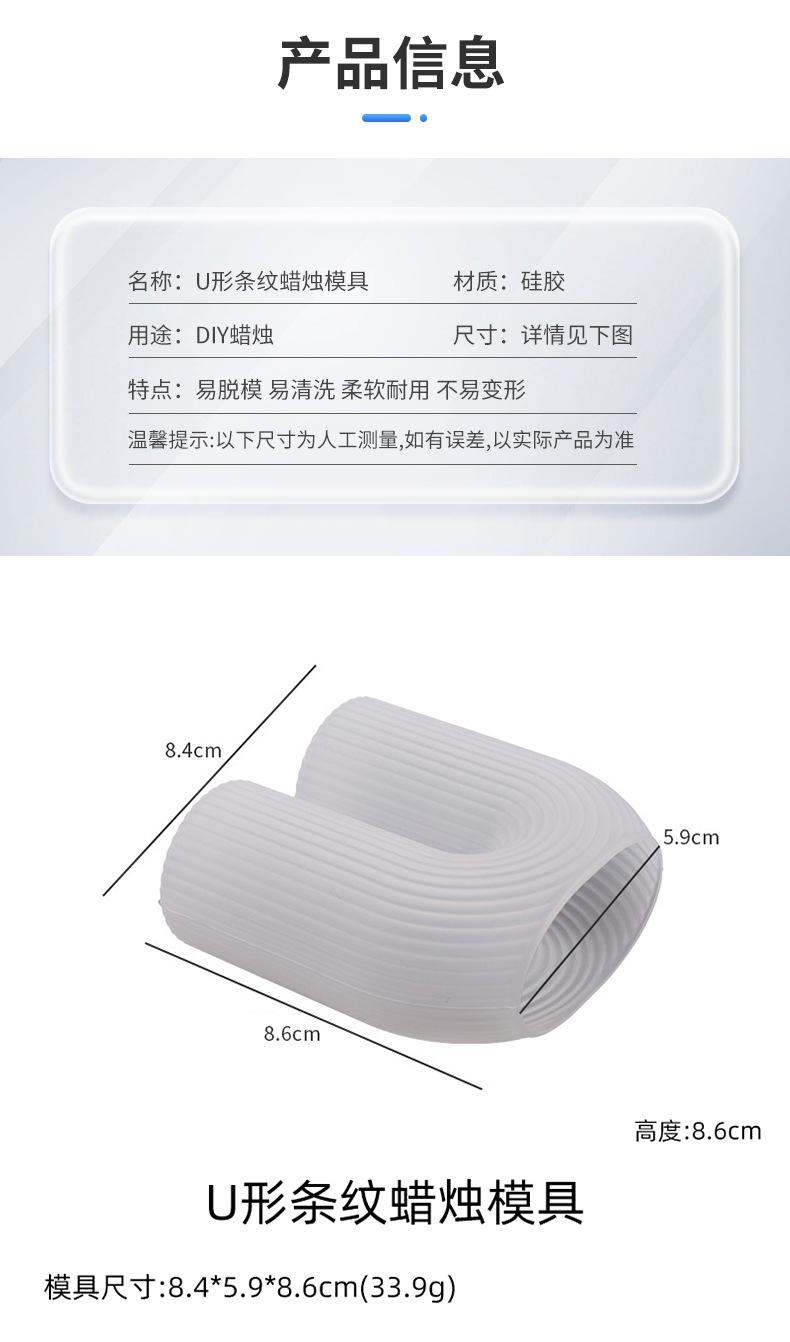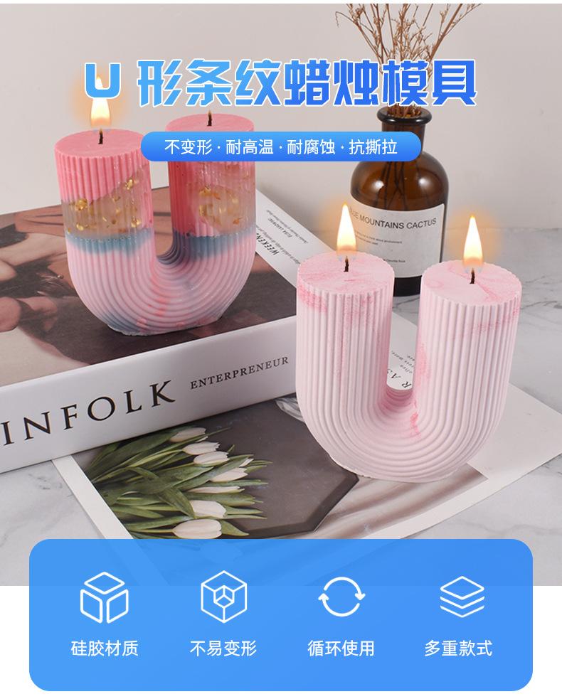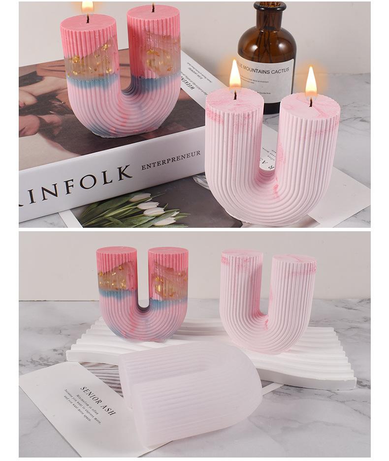 Molde DIY longitudinal, vela arqueada tridimensional, vela perfumada, arco rayado, molde de silicona para vela en forma de U