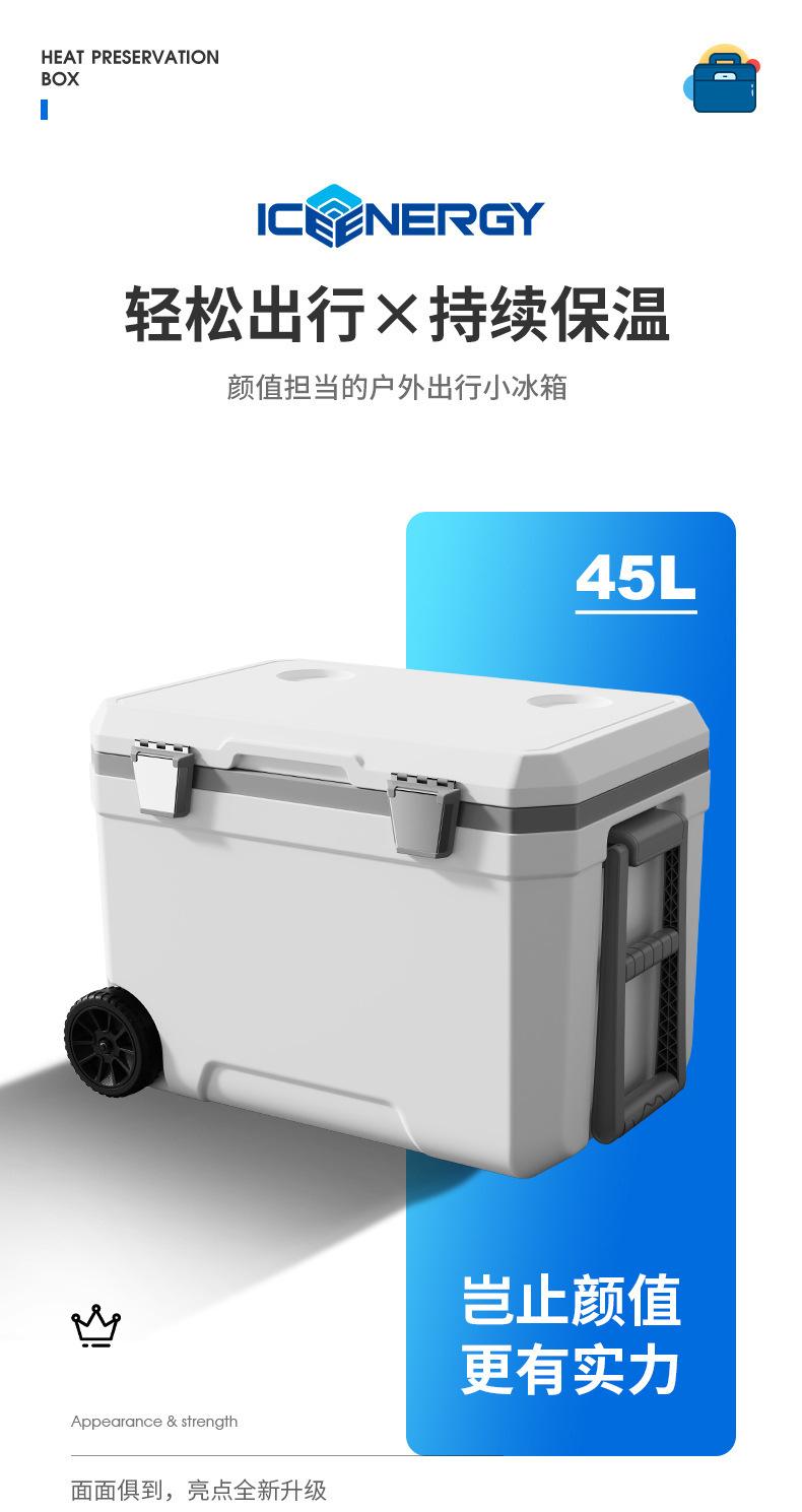 Caja Aislada Trolley 45L para Exterior Estilo Carro Camping Picnic Barbacoa Comida Portátil Rueda Conservación Fresca Refrigerada Congelador