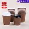 Vaso desechable para bebidas calientes, leche, té, café, vaso de papel grueso con doble aislamiento corrugado, antiescaldaduras, de alta gama